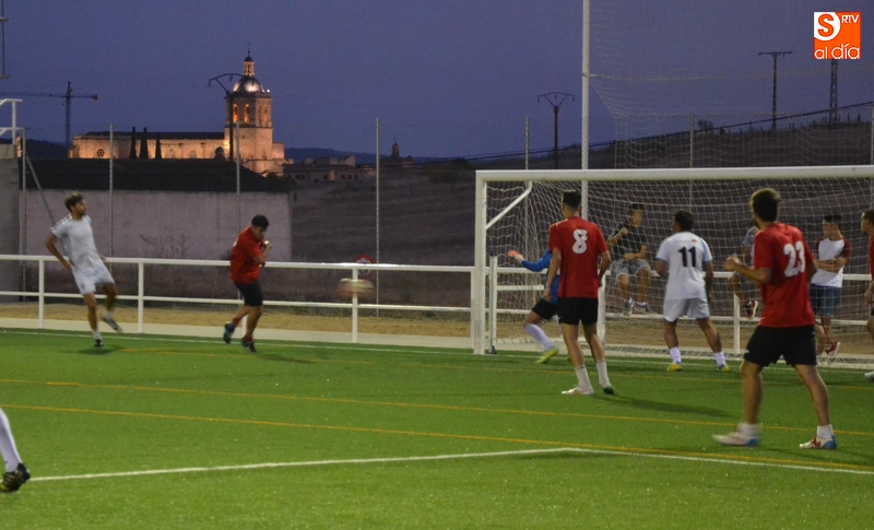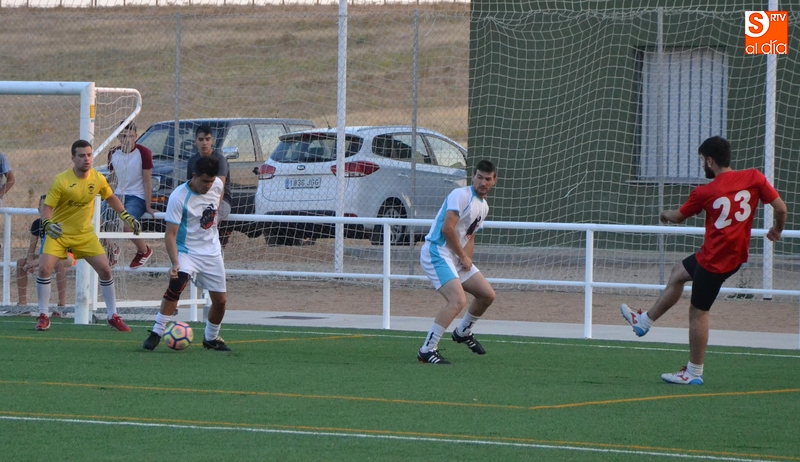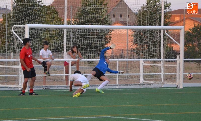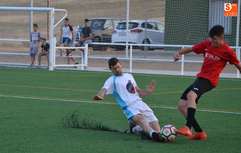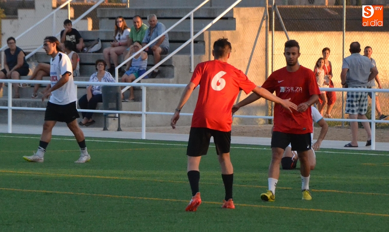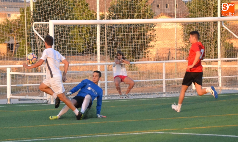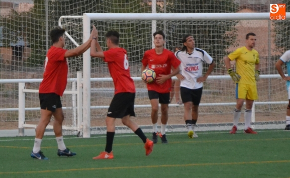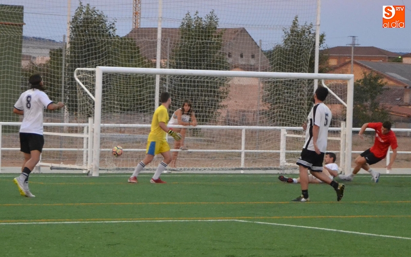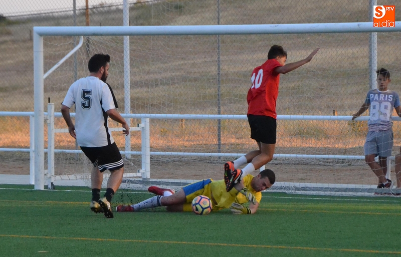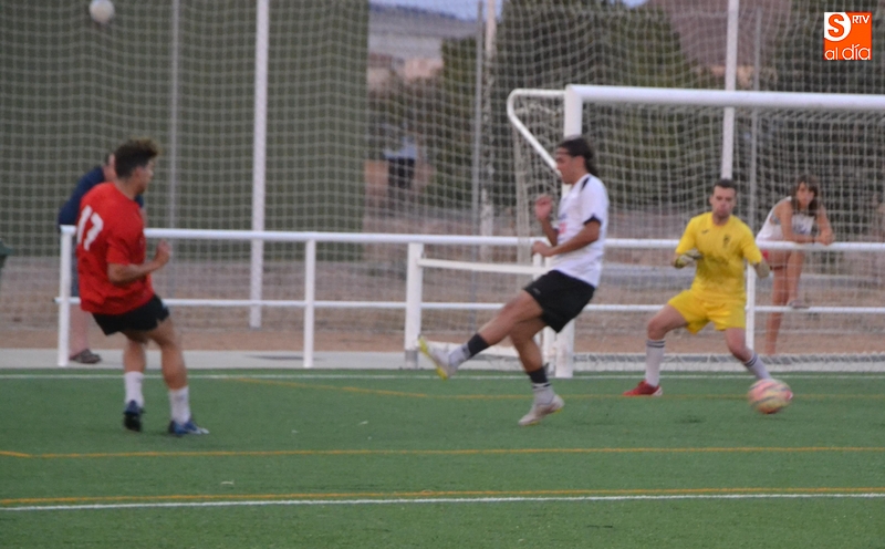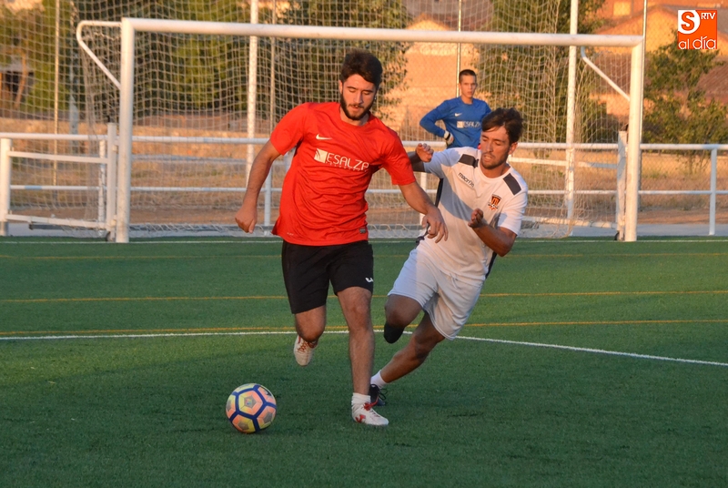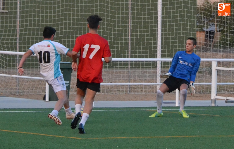 El marcador lo abrió en el 8' Cristian, al aprovechar un balón suelto para batir a Gonzalo desde la frontal. Con desventaja en el marcador, Alquileres Miral tuvo un par de aproximaciones peligrosas (Gabri se topó con Héctor y Álvaro Castaño le dio mal a un balón claro), antes de que Peluquería Esalza iniciase unos minutos de agobio en los que no supieron precisar. Por ejemplo, hubo una contra muy clara en el 16' que Kiko mandó alta, y un par de minutos después tuvieron una doble opción de gol de Cristian y Dani Crespo (la segunda la despejó Luis).