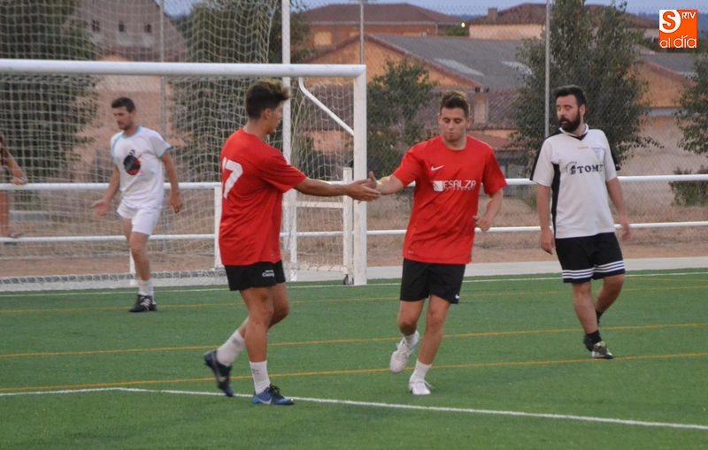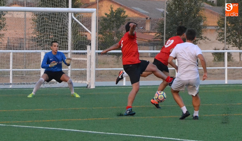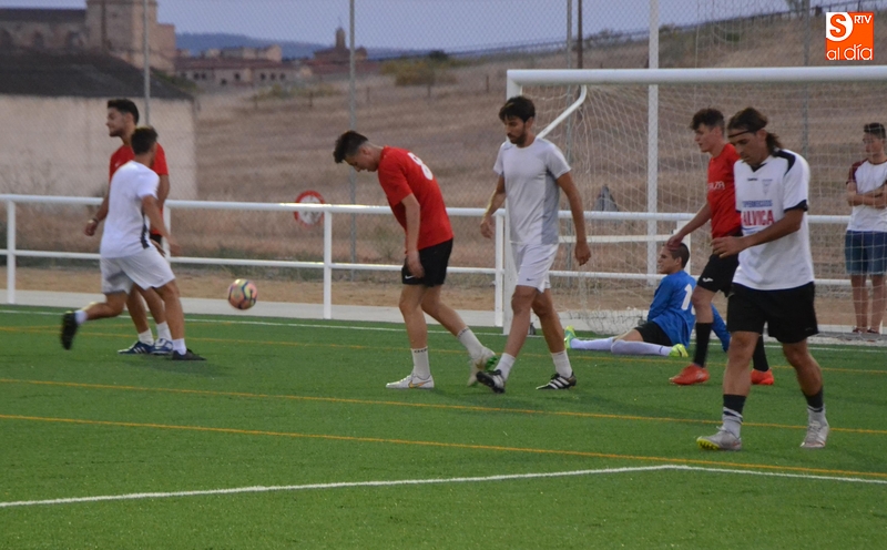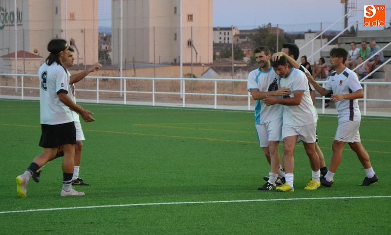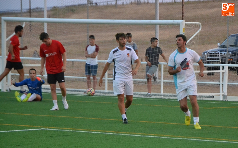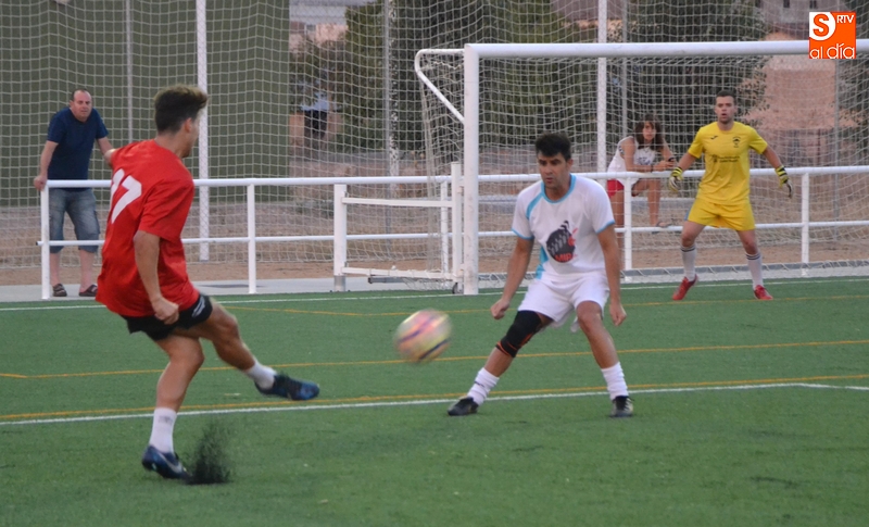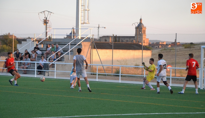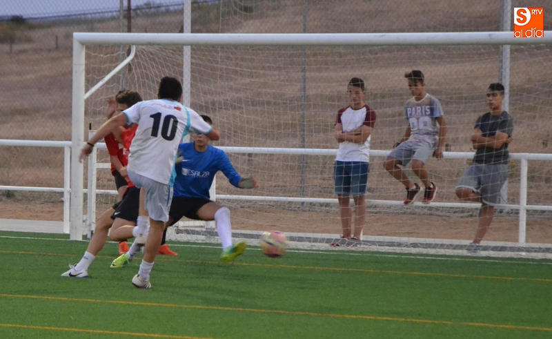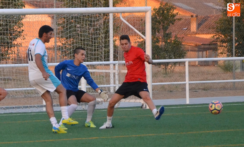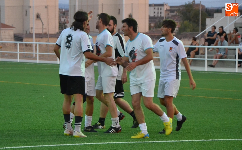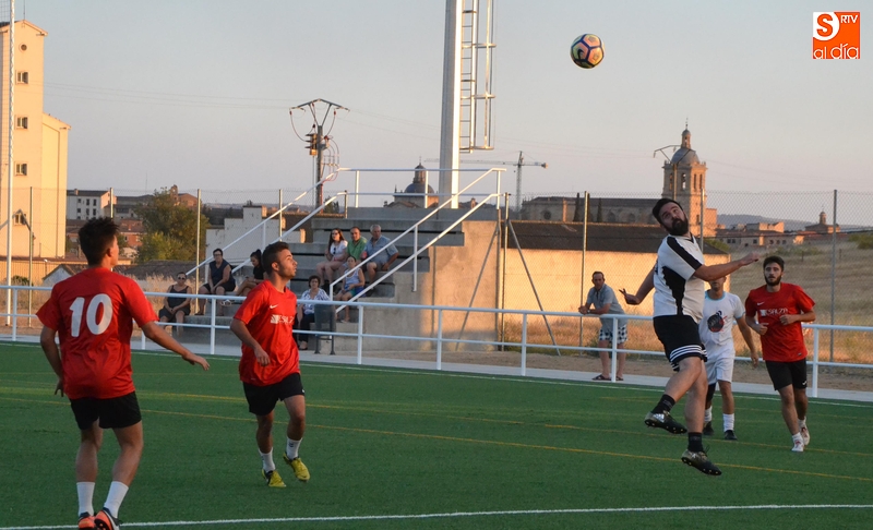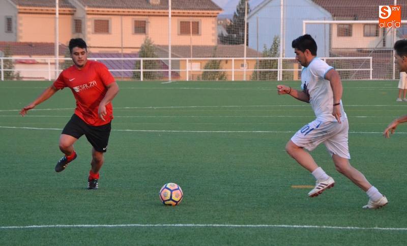 El marcador lo abrió en el 8' Cristian, al aprovechar un balón suelto para batir a Gonzalo desde la frontal. Con desventaja en el marcador, Alquileres Miral tuvo un par de aproximaciones peligrosas (Gabri se topó con Héctor y Álvaro Castaño le dio mal a un balón claro), antes de que Peluquería Esalza iniciase unos minutos de agobio en los que no supieron precisar. Por ejemplo, hubo una contra muy clara en el 16' que Kiko mandó alta, y un par de minutos después tuvieron una doble opción de gol de Cristian y Dani Crespo (la segunda la despejó Luis).