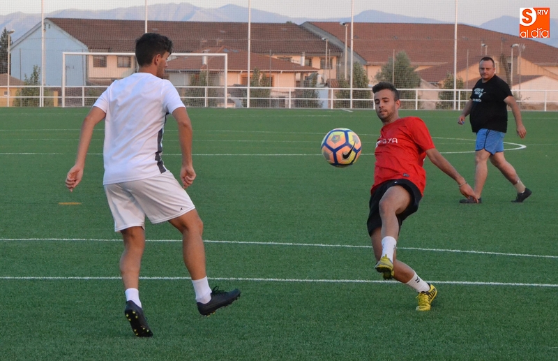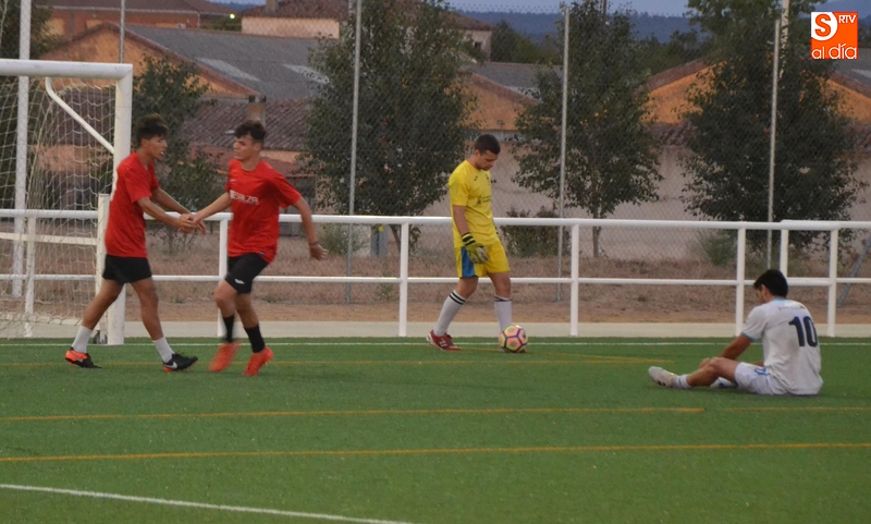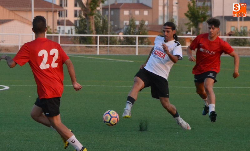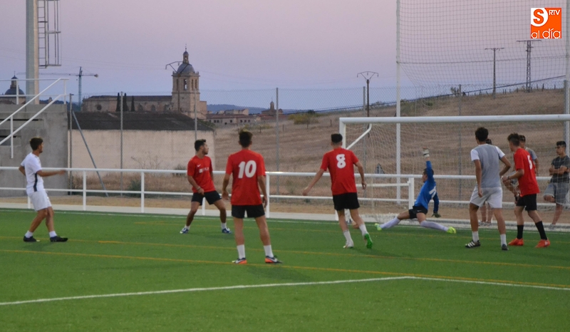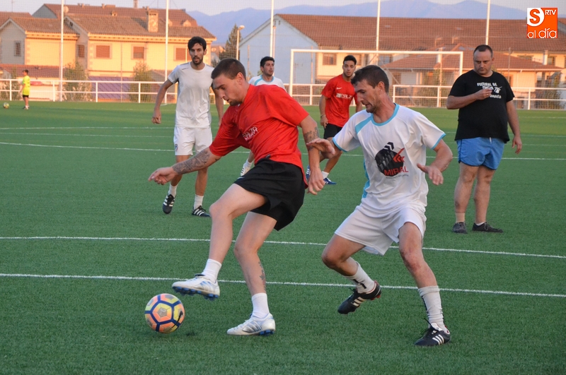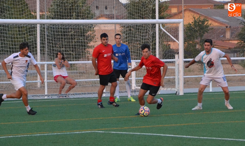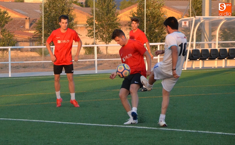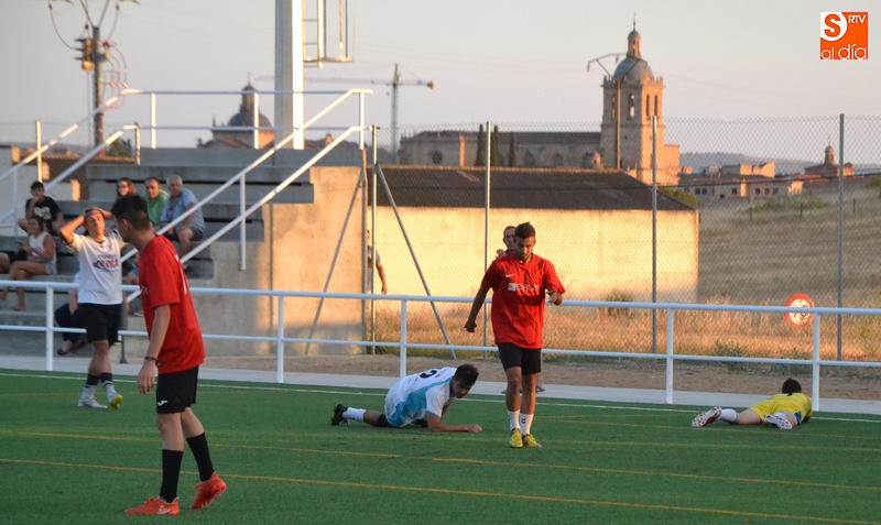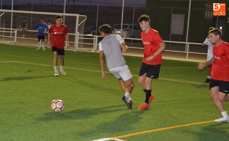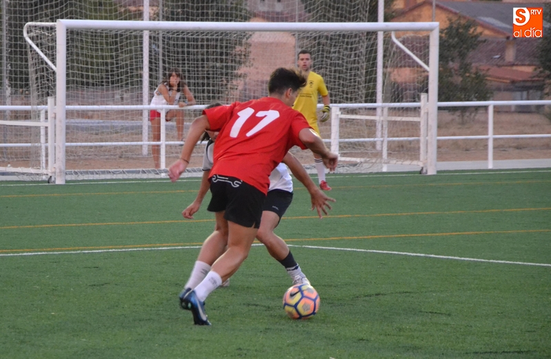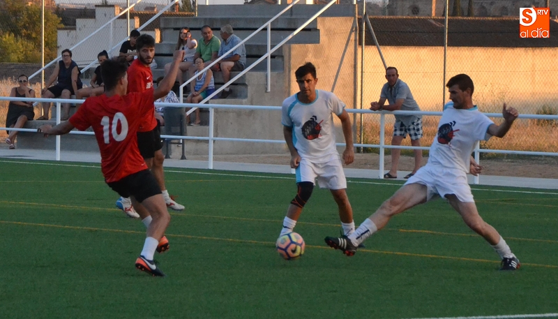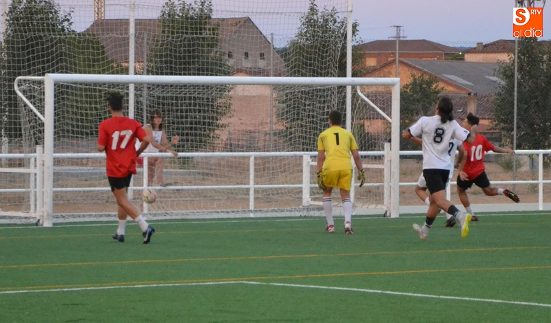 El marcador lo abrió en el 8' Cristian, al aprovechar un balón suelto para batir a Gonzalo desde la frontal. Con desventaja en el marcador, Alquileres Miral tuvo un par de aproximaciones peligrosas (Gabri se topó con Héctor y Álvaro Castaño le dio mal a un balón claro), antes de que Peluquería Esalza iniciase unos minutos de agobio en los que no supieron precisar. Por ejemplo, hubo una contra muy clara en el 16' que Kiko mandó alta, y un par de minutos después tuvieron una doble opción de gol de Cristian y Dani Crespo (la segunda la despejó Luis).
