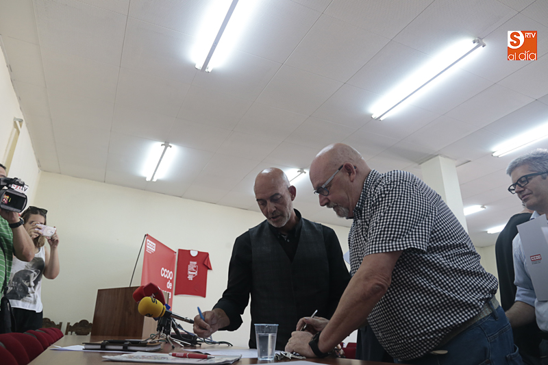 El salón de actos de CCOO acogió este viernes la firma histórica del acuerdo para la Gestión de la Diversidad en el ámbito laboral, como marco de actuación en los centros de trabajo. En la misma estuvieron presentes Amparo Sanz, Directora General de Trabajo de la Junta de Castilla y León, Juan Manuel Gómez, Presidentes de CONFAES, José Vicente Martín, Presidente de CES, Benjamín Crespo, Presidente Cámara de Comercio de Salamanca, Cristina de la Torre, Secretaria de Migraciones de CCOO, y Emilio Pérez Prieto, Secretario General de CCOO de Salamanca.
