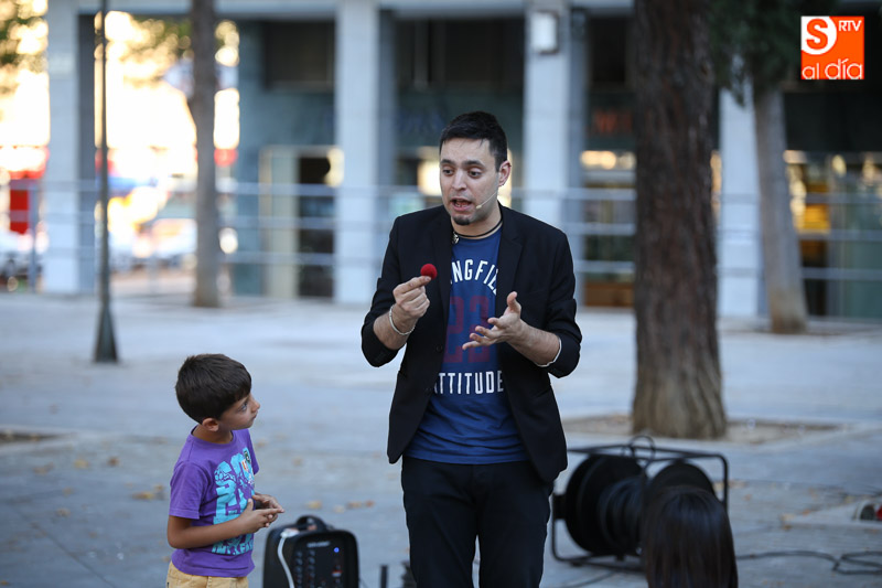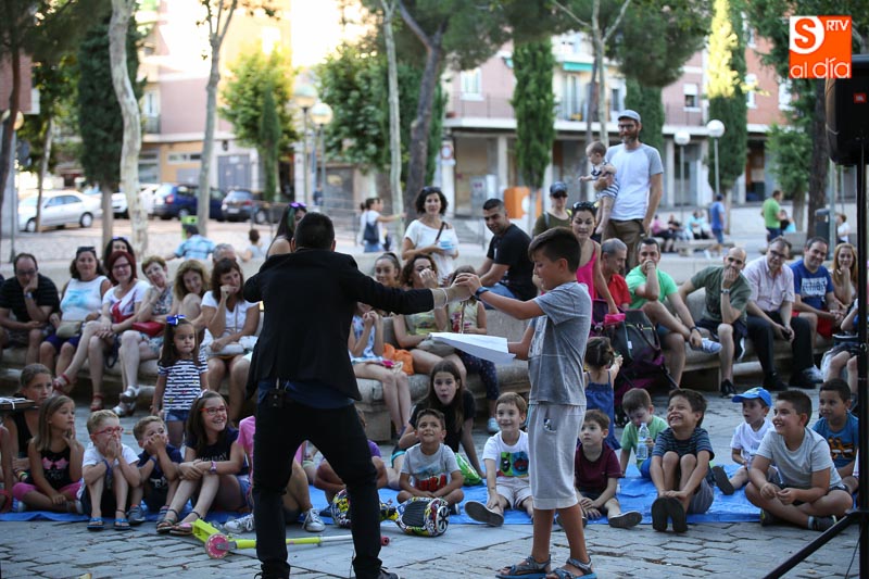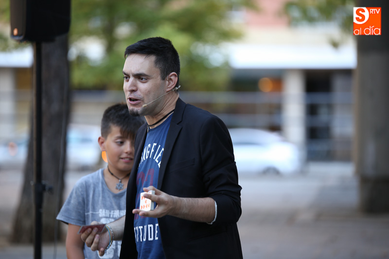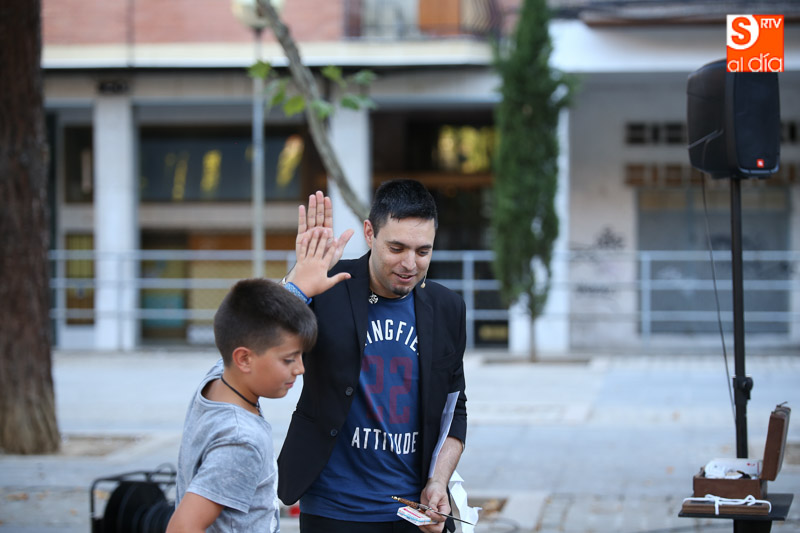 Dentro de las actividades organizadas por el Ayuntamiento para dinamizar la Plaza de Barcelona y el Parque Garrido, este viernes actuó el Mago Pedro, que entretuvo a los espectadores que a las 20 horas se dieron cita en la Plaza de Barcelona. La propuesta es una vorágine de juegos y propuestas de distintos tipos. Aunque centrado en los jóvenes y los niños, los artistas reciben con los brazos abiertos a cualquier margen de edad que se quiera acercar.