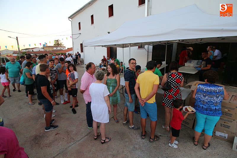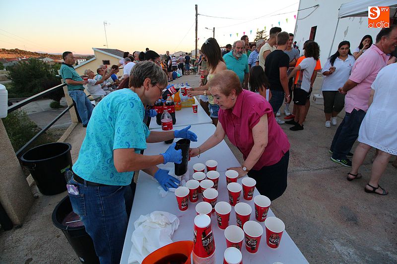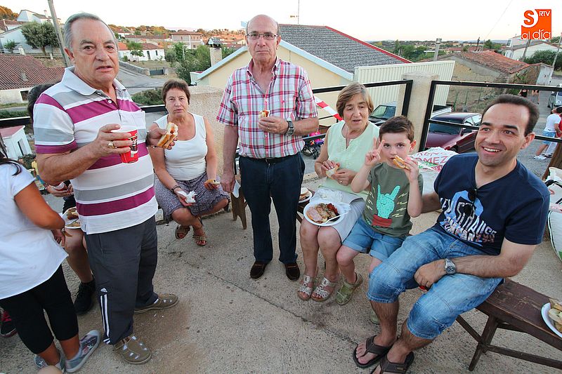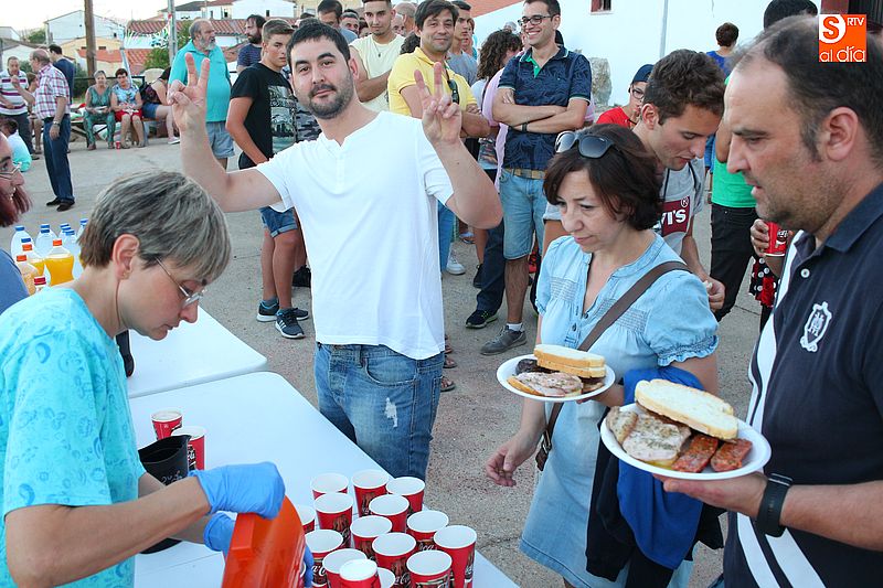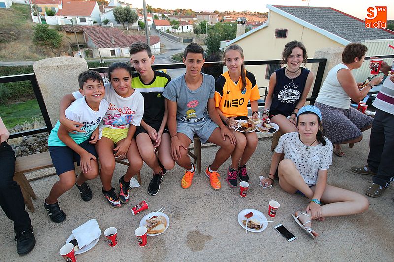 Frades de la Sierra inició en el día de hoy sus festejos en honor a San Antonio que ocuparán todo el fin de semana. En la primera jornada festiva se reunieron los vecinos en la plaza del poeta Gabriel y Galán para el tradicional chupinazo a media tarde. Pero no fue hasta la hora de la cena, en la que congregó el público para disfrutar de la ya tradicional barbacoa que se ofreció en el antiguo ayuntamiento. Se prepararon 700 raciones de carne, morcilla, panceta y longaniza, acompañandas de refrescos y sangría. Un buen comienzo de los festejos que se complementó con la primera de las verbenas de la localidad, a cargo de la orquesta Colores.