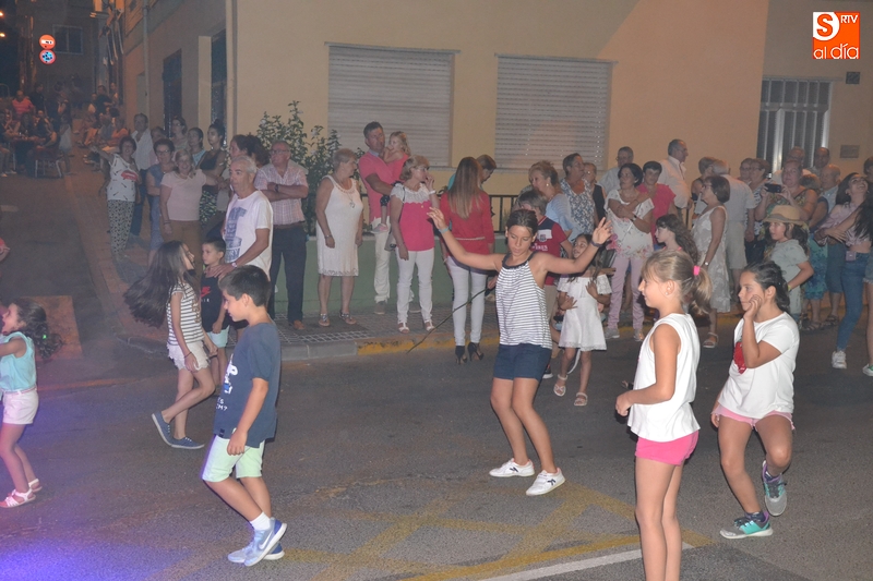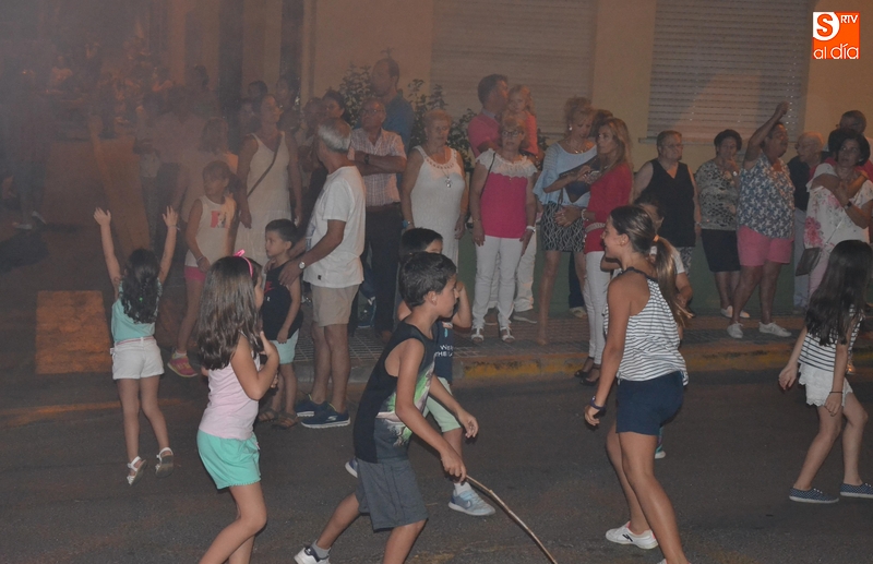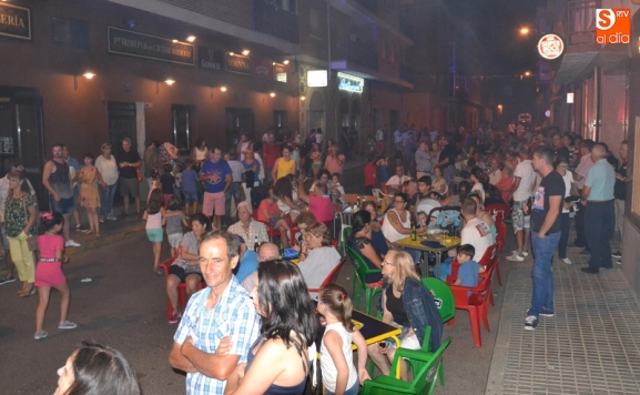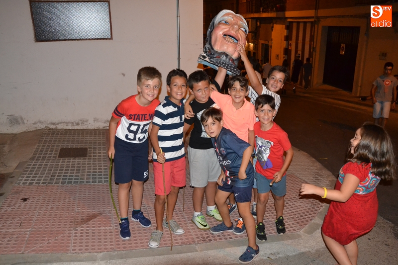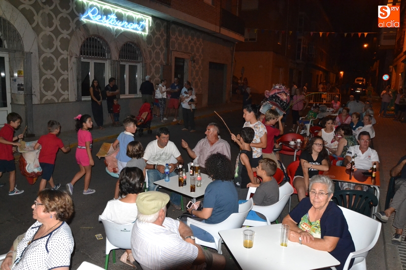 Durante el primer tramo de la noche se pudo ver por allí a los concejales de Izquierda Unida Domingo Benito y Alejandra Méndez, así como a los bomberos que habían participado en la cena de homenaje a Francisco de Miguel. Asimismo, y como también es tradición en este barrio, durante las primeras horas de la velada los niños recorrieron las calles delante de los cabezudos.