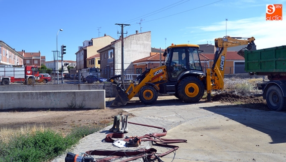 Efectivos de Parque de Bomberos de Peñaranda, junto a operarios municipales y maquinaria pesada trabajan desde pr