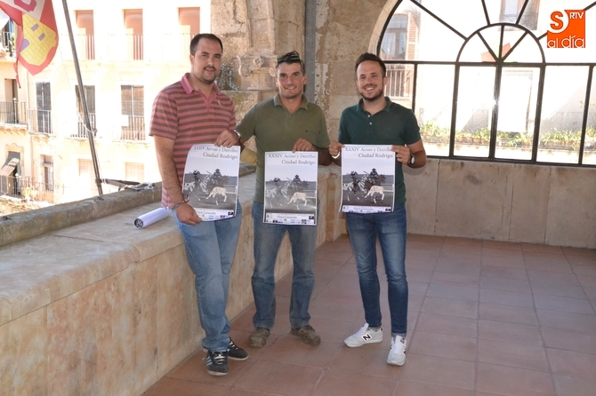 La llegada del primer fin de semana del mes de agosto supone la celebración en Ciudad Rodrigo de una de las citas más emblemáticas del programa festivo veraniego de la ciudad: el Concurso Intercomunitario de Acoso y Derribo, que ya cumple 34 ediciones. La cita de este año fue presentada en la mañana del jueves en el Ayuntamiento, por los concejales de Festejos y Deportes, Cristian González y Carlos Fernández Chanca, y por Juan Luis Montero 'Perita', responsable del Club Deportivo Casasola que vuelve a organizar un año más la prueba en sus instalaciones.