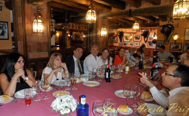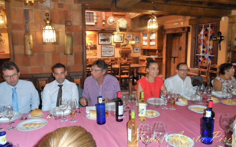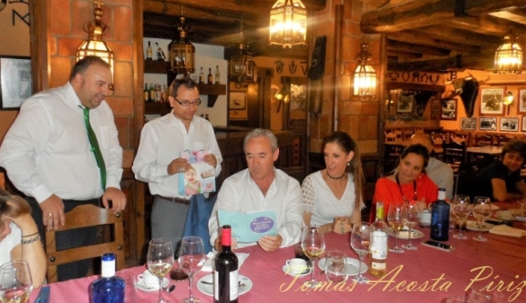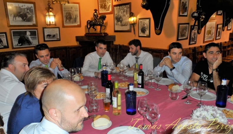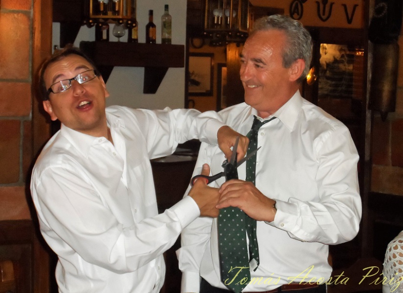 Manuel Montejo celebra su jubilación con corte de corbata incluido   | Imagen 1Aprovechando el ambiente torero del salón donde comieron, Manuel Montejo emuló a los toreros, y en su caso se cortó la corbata para simbolizar la finalización de su etapa laboral. A continuación, pronunció unas palabras de despedida, agradeciendo la amistad y calidad humana de los compañeros con los que ha trabajado.