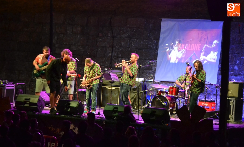 La noche ?calurosa, aunque se levantó aire- prosiguió con la formación de rock Sonotones, cerrándose con música ska-jazz de la mano de la agrupación madrileña Skalone, que propuso un repertorio con piezas legendarias del jazz y canciones propias. El certamen cumplió relativamente bien con los horarios previstos.