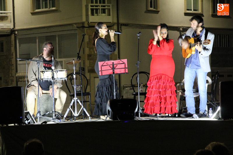 Más de 200 personas asistieron este lunes a la plaza de Santiago Martín 'El Viti', en Vitigudino, para presenciar la actuación del grupo de flamenco Salamenco, evento incluido en el programa de Ferias y Fiestas en honor a la Virgen del Socorro.