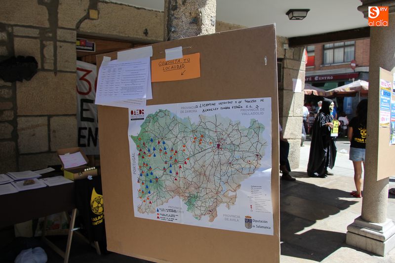 Este martes, integrantes del colectivo Salamanca Antinuclear se personaban en las cuatro calles de Vitigudino para informar de los proyectos mineros previstos en la provincia y sensibilizar al público de las consecuencias que traería para los municipios el desarrollo de estos proyectos.