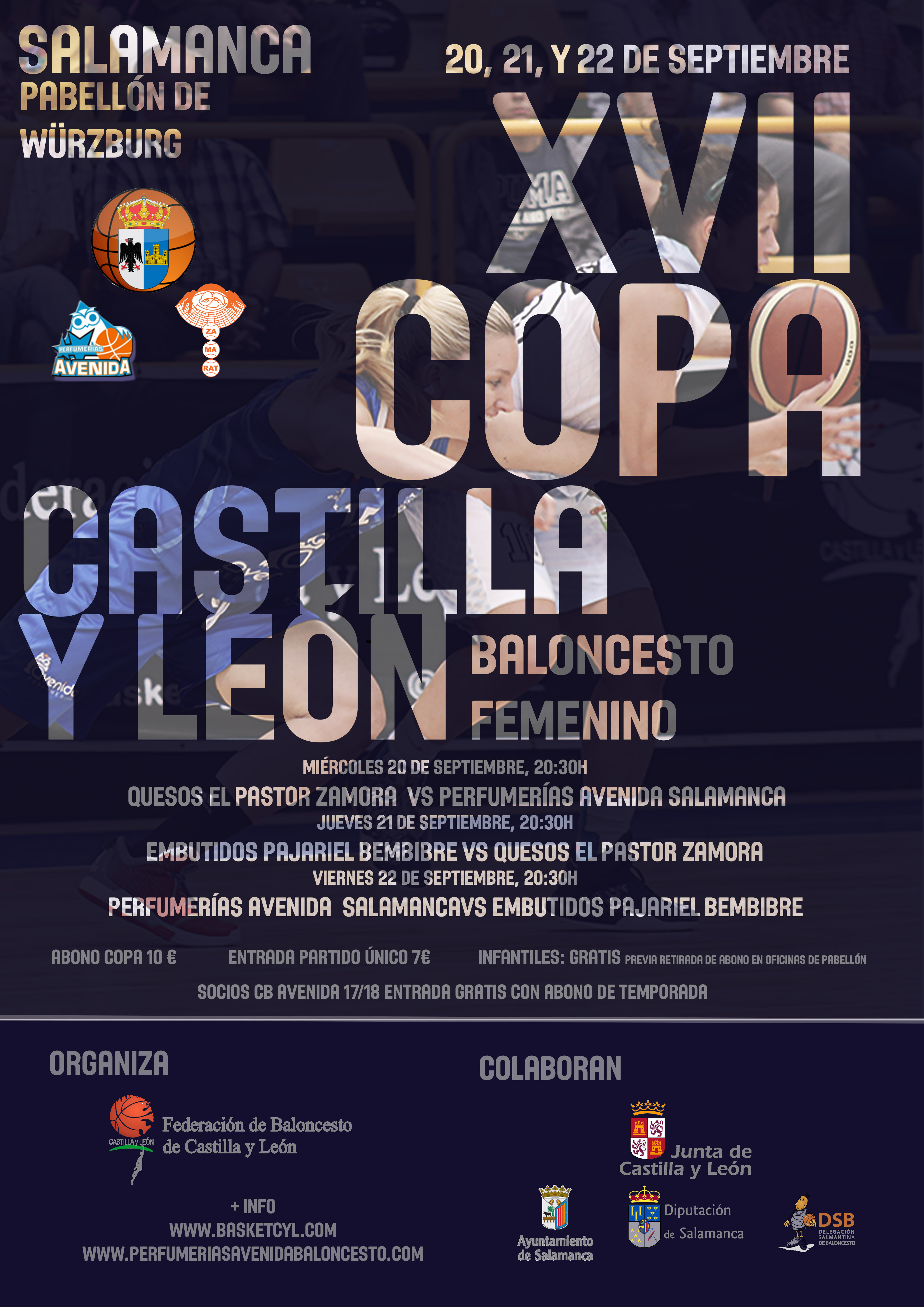 La Federación de Baloncesto de Castilla y León ha vuelto a escoger, por segundo año consecutivo, a Salamanca como sede de la XVII Copa de Baloncesto Femenino Castilla y León, con Perfumerías Avenida como organizador. El campeonato se desarrollará del 20 al 22 de septiembre en el pabellón de Würzburg y contará con la participación de los tres equipos castellanos y leoneses que compiten en la máxima categoría nacional: Embutidos Pajariel Bembibre, Quesos El Pastor de Zamora y Perfumerías Avenida de Salamanca.