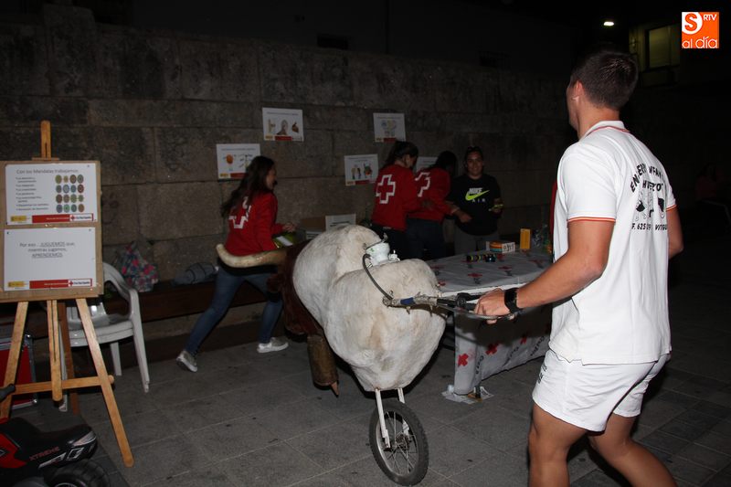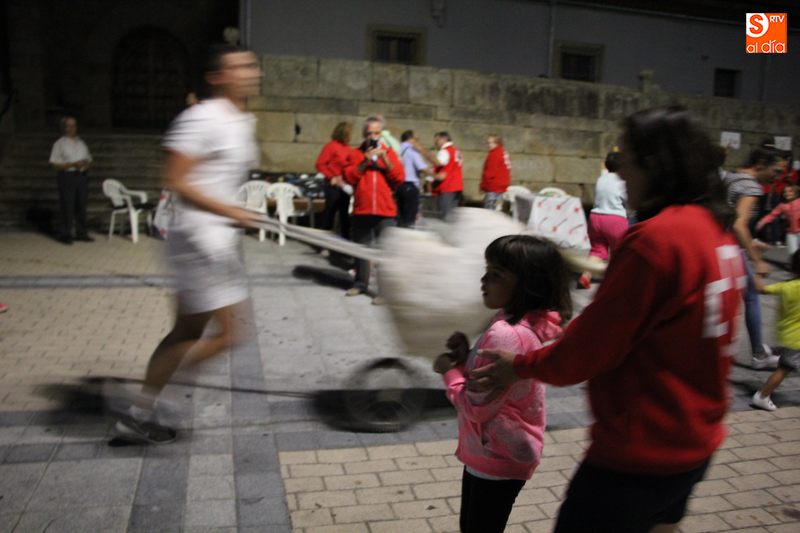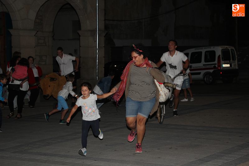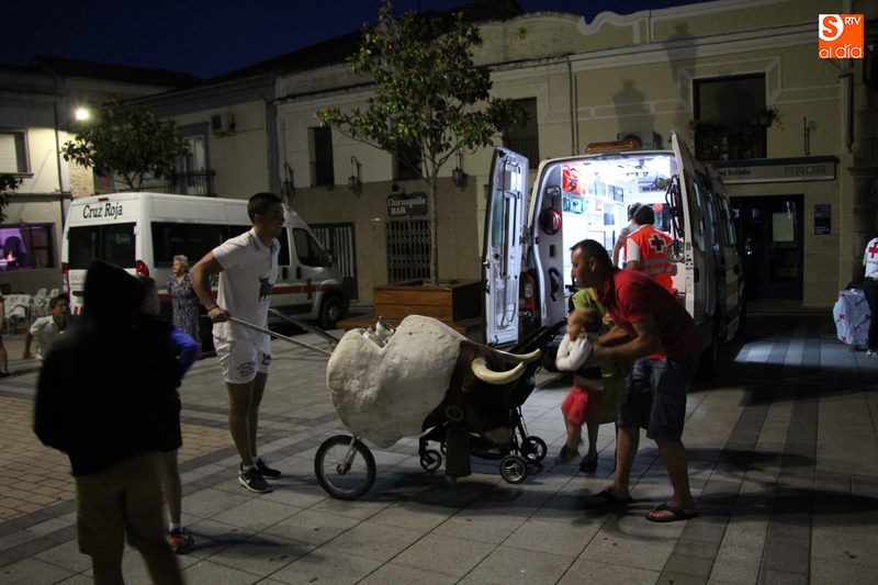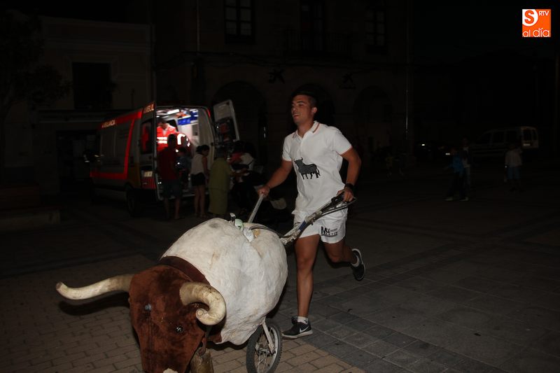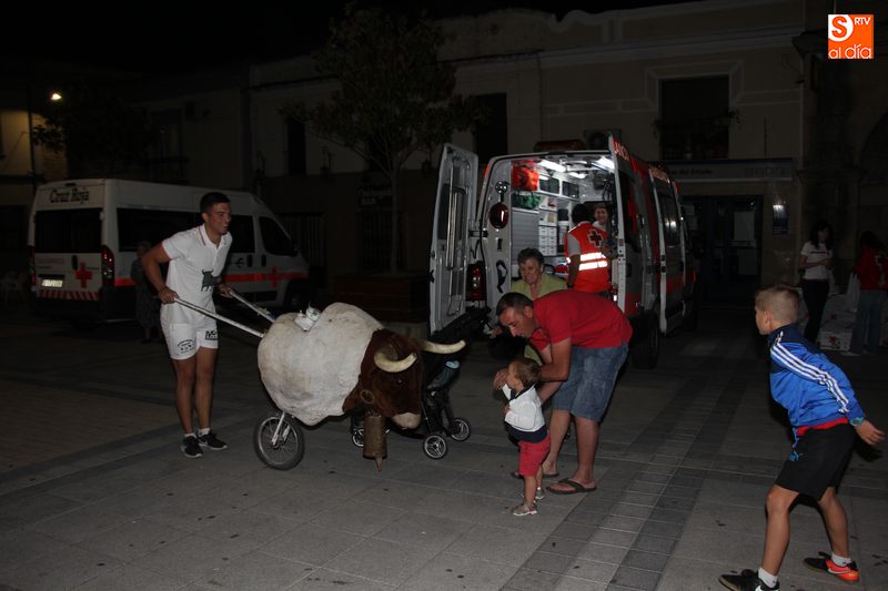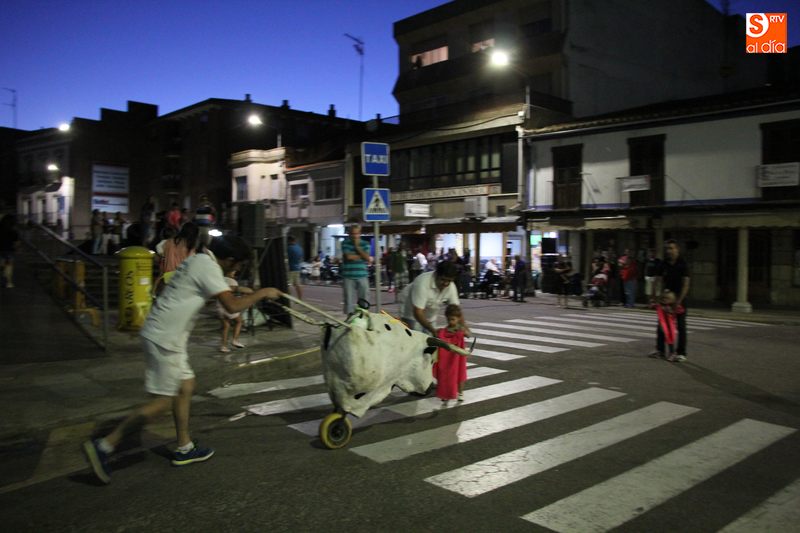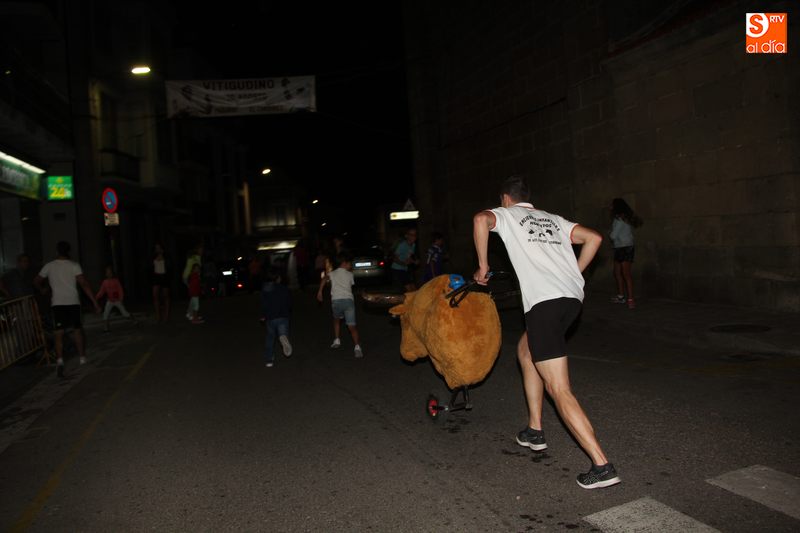 Los carretones 'embolaos' es la última creación de Encierros Infantiles Huertos. La 'ganadería' de Carlos Huertos volvió a sorprender a los más pequeños en Vitigudino, que también disfrutan de las Ferias y Fiestas. La plaza de España se llenaba de algarabía la noche de este martes durante los encierros de carretones.