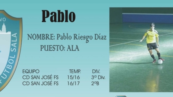 Pablo es un joven valor que se desenvuelve como ala y cuya característica principal es su habilidad y desborde en el uno contra uno. Se trata de la cuarta incorporación, tras los fichajes del entrenador Mario Carretero y los jugadores Miguel y Rubén.