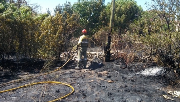 Un pequeño incendio, que se produjo este jueves, sobre las 12:40 horas, junto a las viviendas de la zona del regato en Monterrubio de la Sierra, ha causado gran revuelo en la localidad.