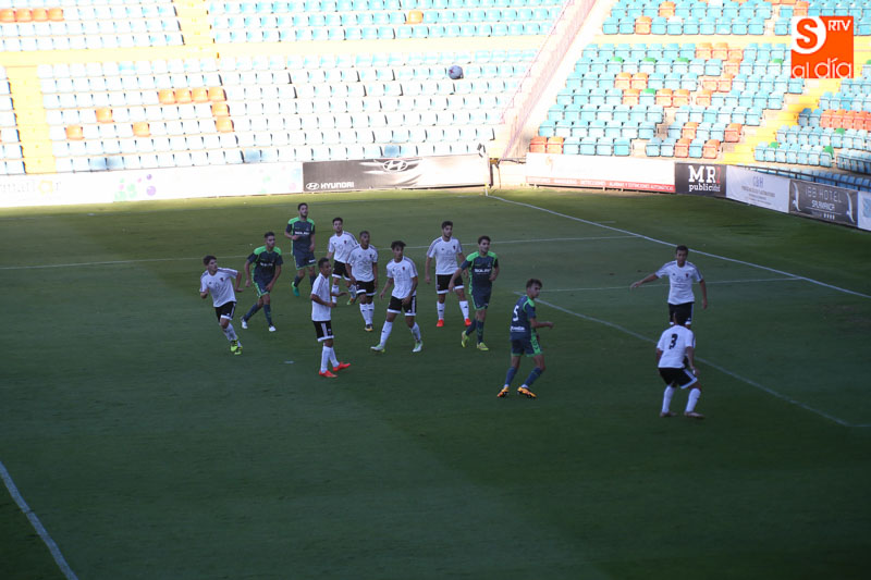 El tanto hizo que los nervios aumentaran en el bando charro, aunque pasados los primeros diez minutos el Salmantino fue tomándole el pulso al partido y de qué manera, ya que tomó el mando para no volver a soltarlo y dejar el bagaje ofensivo de su rival hasta el descanso en apenas alguna jugada de estrategia. En cambio, los charros tuvieron varias ocasiones claras para desequilibrar la balanza a su favor.