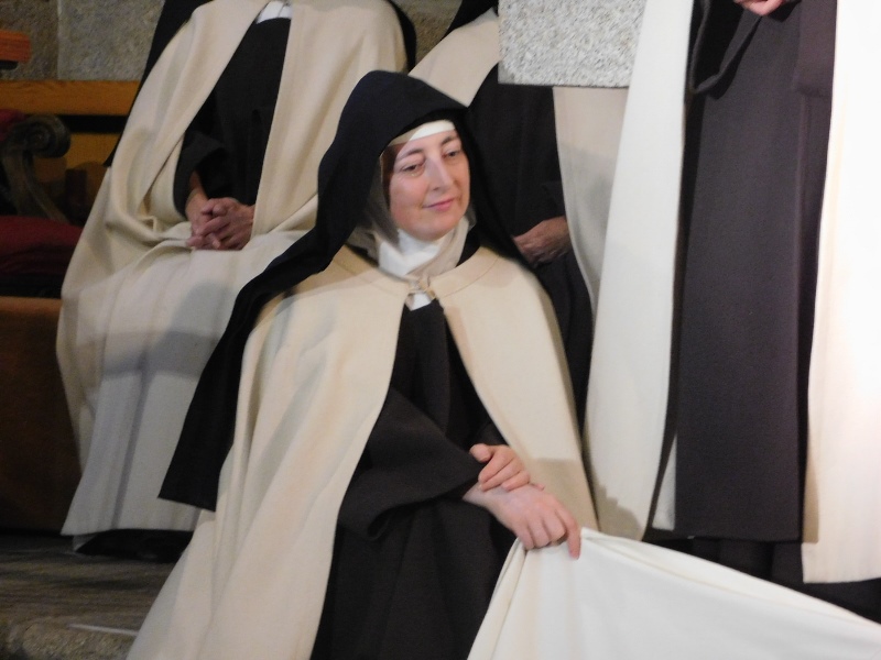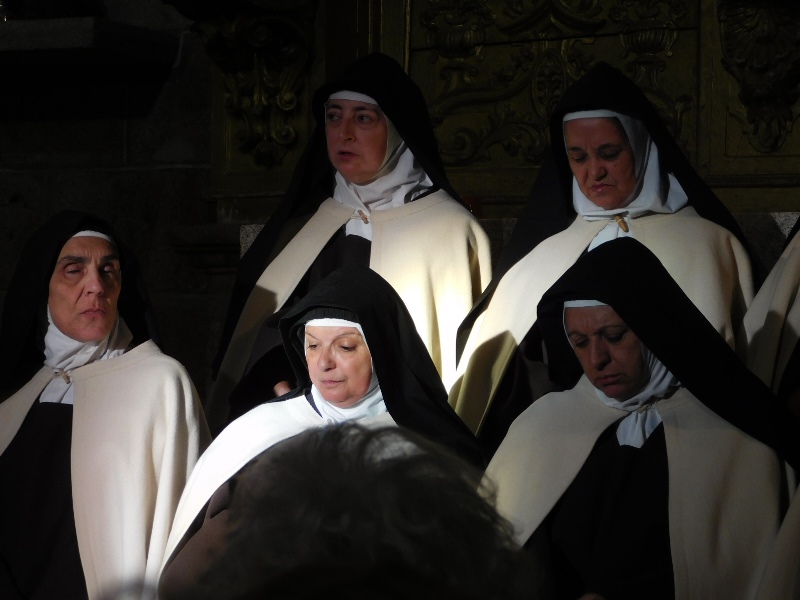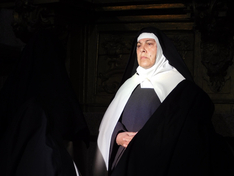 Los actores, vestidos con los hábitos de la época de Teresa de Jesús, hacen dudar en alguna ocasión de su auténtica condición de religiosos en la vida real, sin que se repare en que el vestuario no pertenece a nuestra época. Está puntillosamente confeccionado de acuerdo a los cánones entonces establecidos, y son el trabajo de una de las actrices, que aunque en la obra apenas habla, por ser la hermana "lega", responsable de las necesidades del resto, con esta magnífica confección, ha aportado también un elemento básico para su éxito y credibilidad. La fuerza concentrada en el recinto religioso, como marco incomparable para el montaje y escenario de alta relevancia histórica, artística y teatral, es la guinda, por la que desde un primer momento apostó el productor Javier de Prado para su obra.