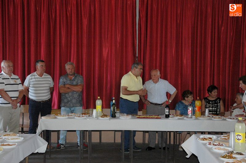 El alcalde de Peralejos de Abajo, Alfonso Castilla, hizo entrega este domingo a Alipio Holgado Holgado, nacido el 22 de julio de 1928, de una placa que le reconoce como la persona de mayor edad empadronada en el municipio. Tras el acto de reconocimiento y unas palabras del alcalde en agradecimiento a la colaboración prestada por los vecinos, los asistentes daban cuenta del convite ofrecido por el Ayuntamiento y que pone fin a estas celebraciones.