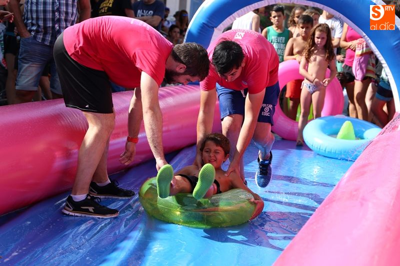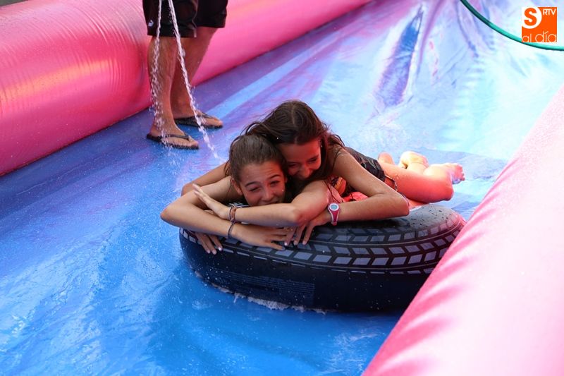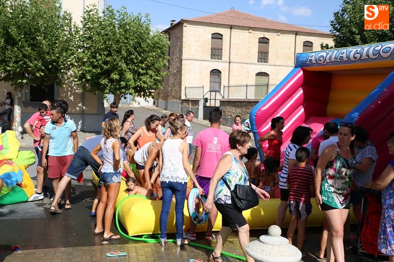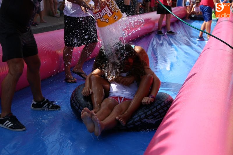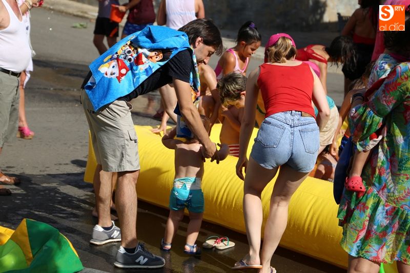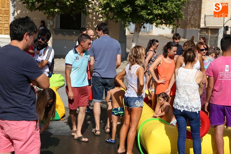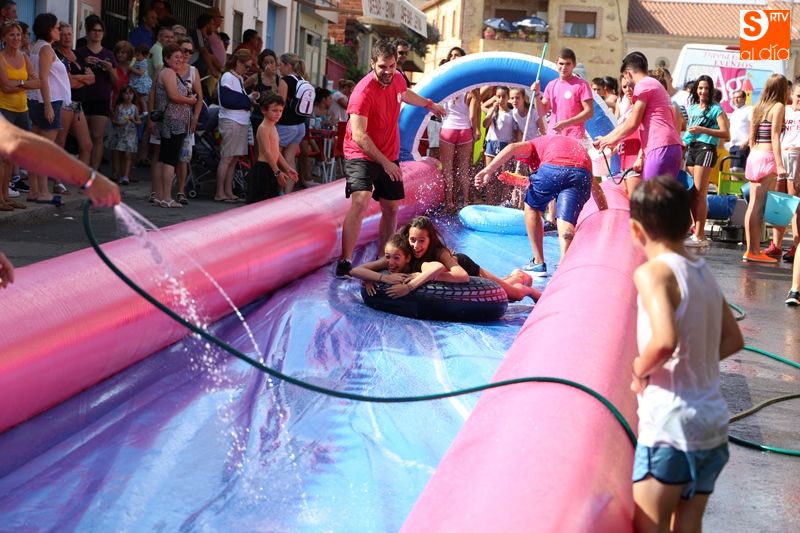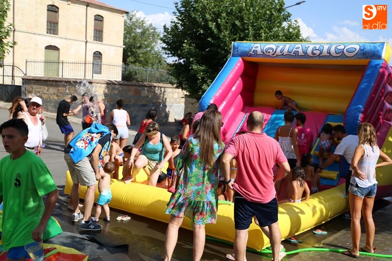 ¿Qué mejor que tirarse un cubo de agua cuando el calor aprieta? Este lunes, los vecinos de Aldearrubia se han arrojado litros y litros de refrescante agua con cubos y botellas. Además, se ha instalado un gran tobogán acuático sobre el que se han deslizado los asistentes, subidos en flotadores. Para los más pequeños se ha colocado un tobogán hinchable de menor tamaño en el que han disfrutado a lo grande.