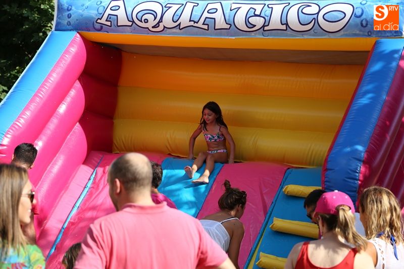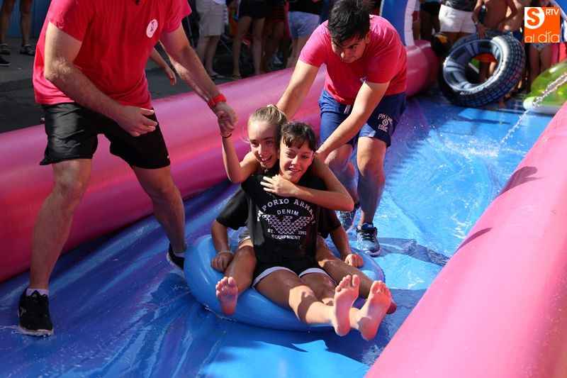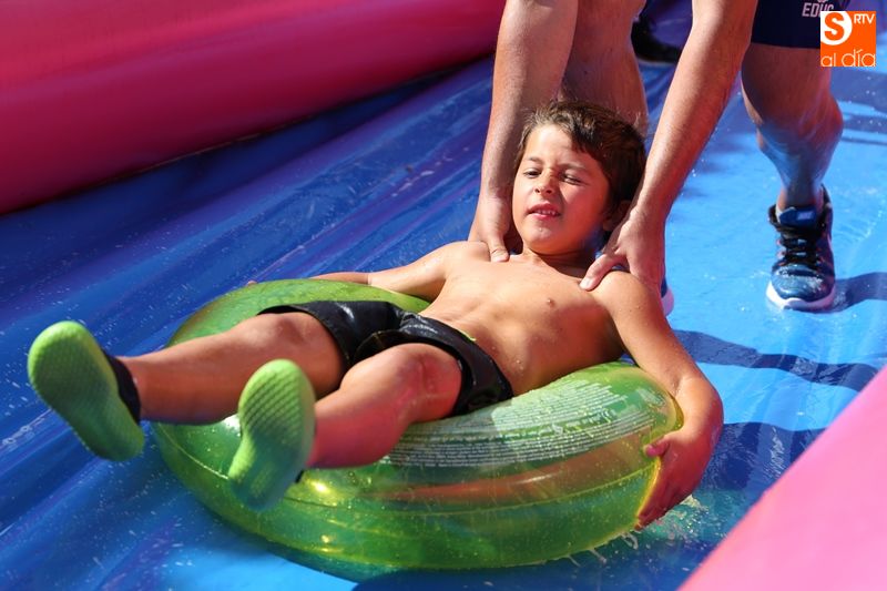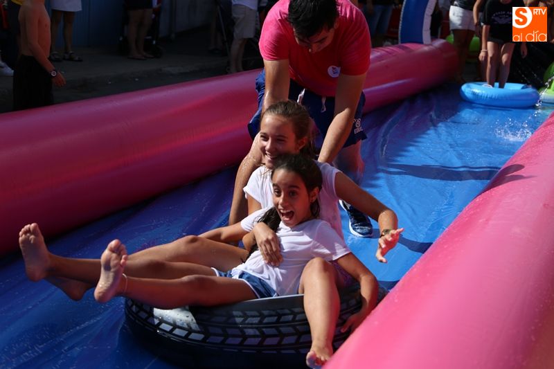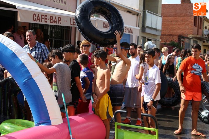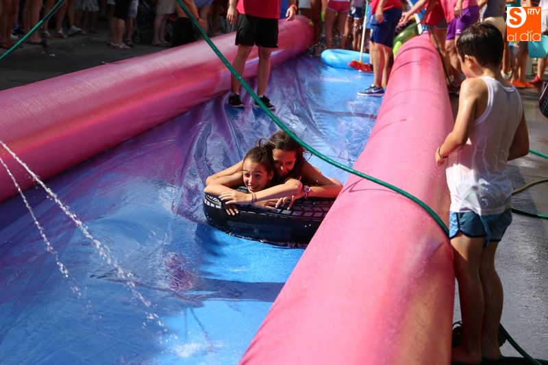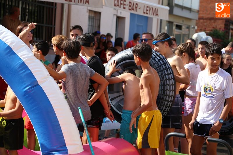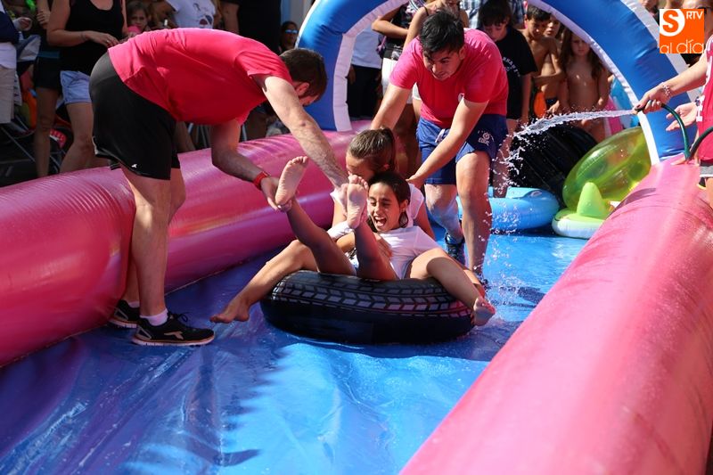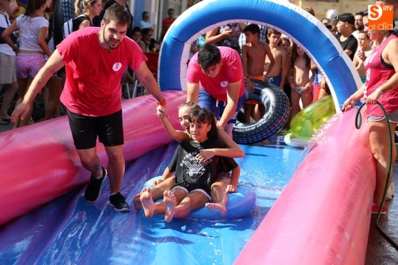 ¿Qué mejor que tirarse un cubo de agua cuando el calor aprieta? Este lunes, los vecinos de Aldearrubia se han arrojado litros y litros de refrescante agua con cubos y botellas. Además, se ha instalado un gran tobogán acuático sobre el que se han deslizado los asistentes, subidos en flotadores. Para los más pequeños se ha colocado un tobogán hinchable de menor tamaño en el que han disfrutado a lo grande.