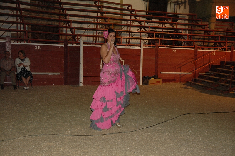 Y junto con el emotivo pregón lleno de recuerdos de su infancia, tenía lugar la actuación 'Noche de Coplas', con Karmen Rivero (de Chipiona) acompañada de guitarrista.