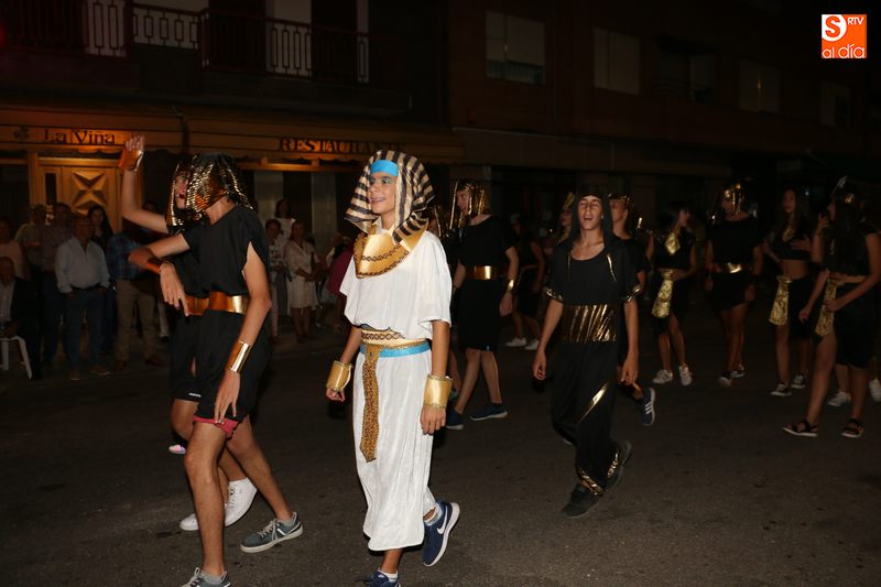 Hasta ocho carrozas, varias de ellas espectaculares: 'los chinos', otra de gnomos, una de los encierros de San Fermín, además de las dos que portaban a la corte infantil y juvenil, además de las realizadas por las peñas, que por su carácter más cercano merecían especial atención, especialmente la de la siega, que reflejaba una imagen desaparecida de nuestros pueblos, a Dios gracias. Y no menos merece mención la carroza de la pirámide, con un gran trabajo detrás, además de la infantil de la playa por la iniciativa y la ilusión con la que sus protagonistas han vivido este desfile.