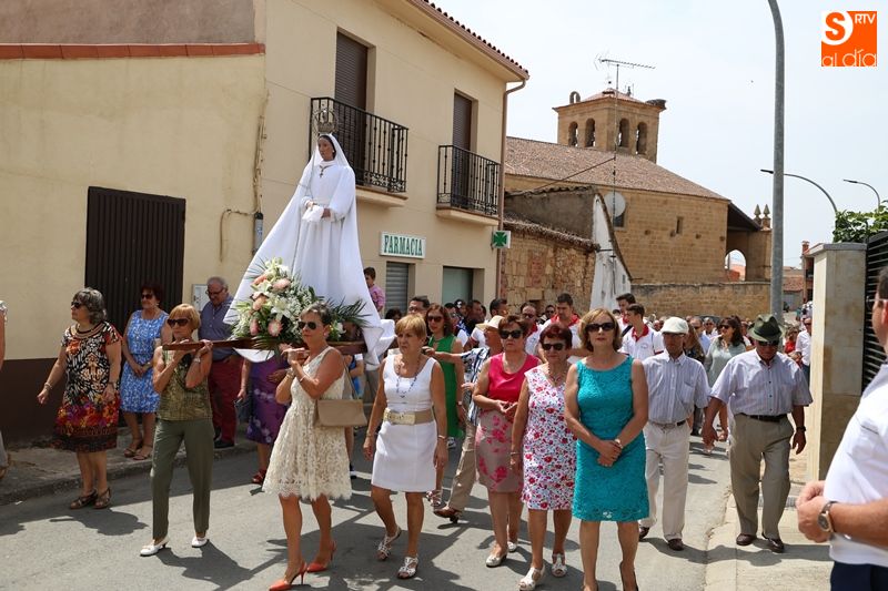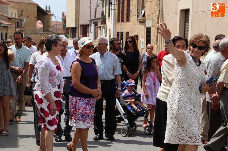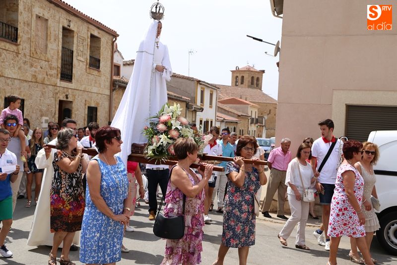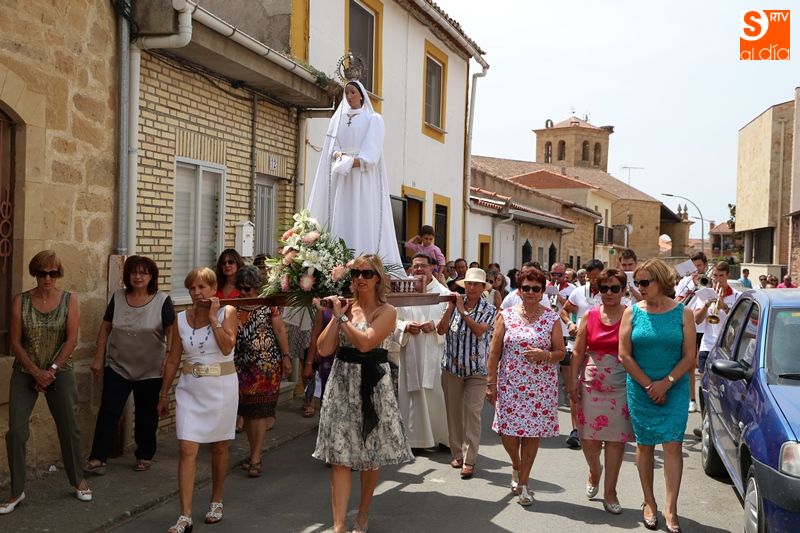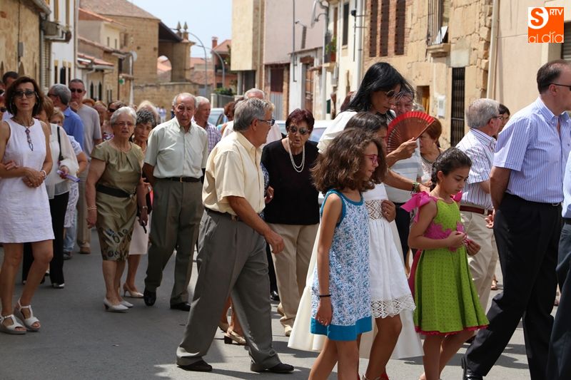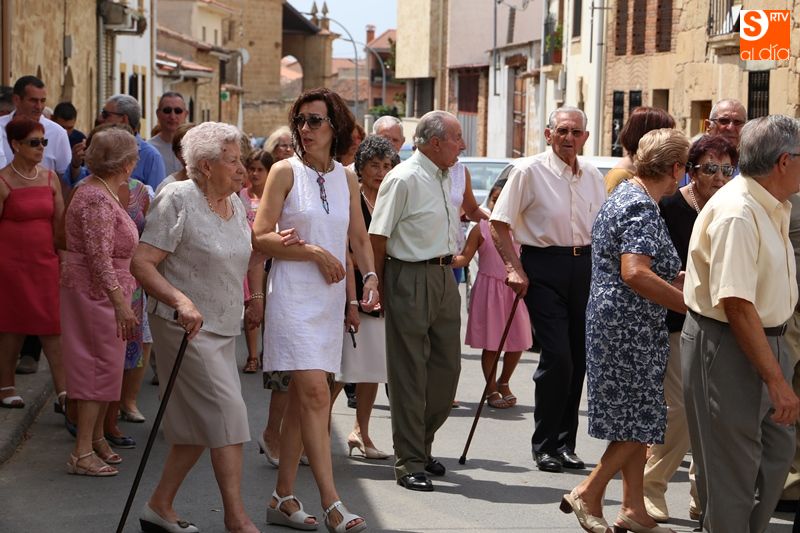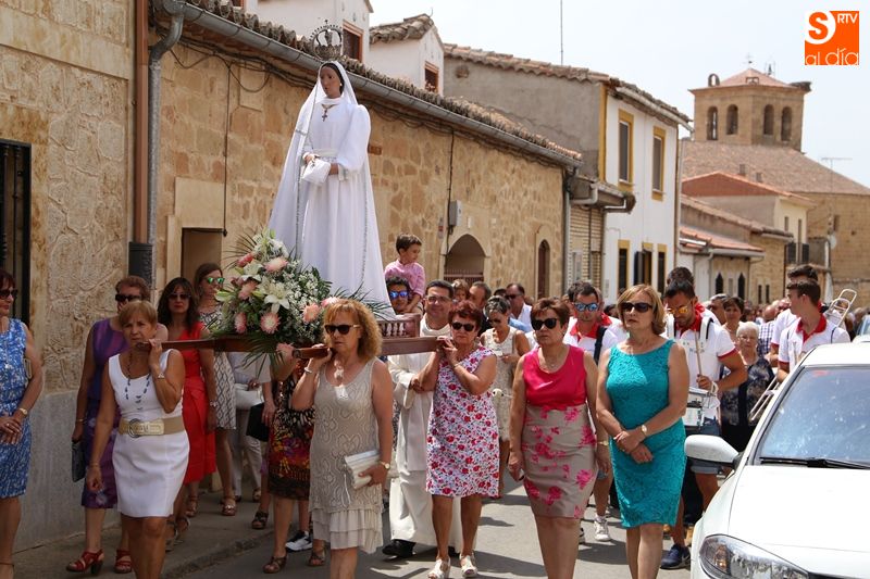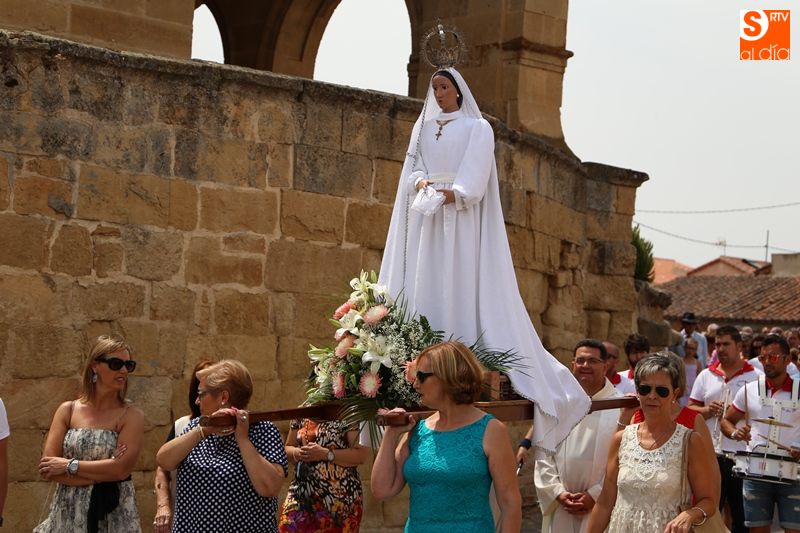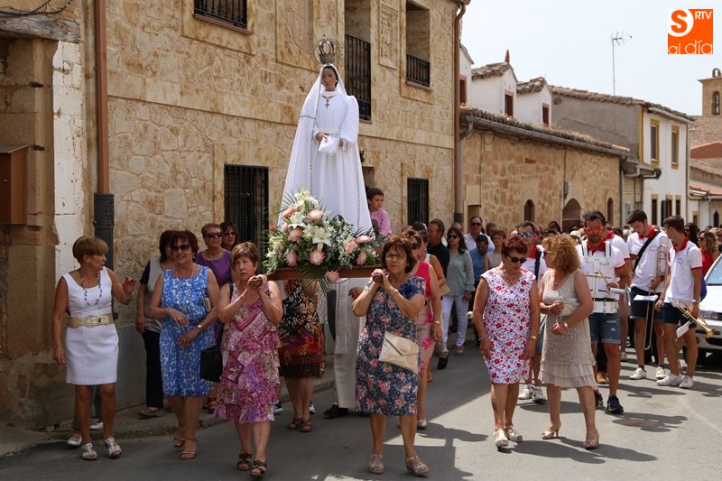 Aldearrubia ha llegado hoy a su último día de las fiestas, jornada que coincide con el día grande. Los vecinos han asistido a la tradicional misa en la Iglesia parroquial de San Miguel Arcángel, declarada Bien de Interés Cultural, y han salido a continuación, cerca de las 14 horas, en procesión junto a la imagen de Nuestra Señora de la Asunción para recorrer las calles de la localidad. La patrona ha sido portada a hombros por mujeres del pueblo.