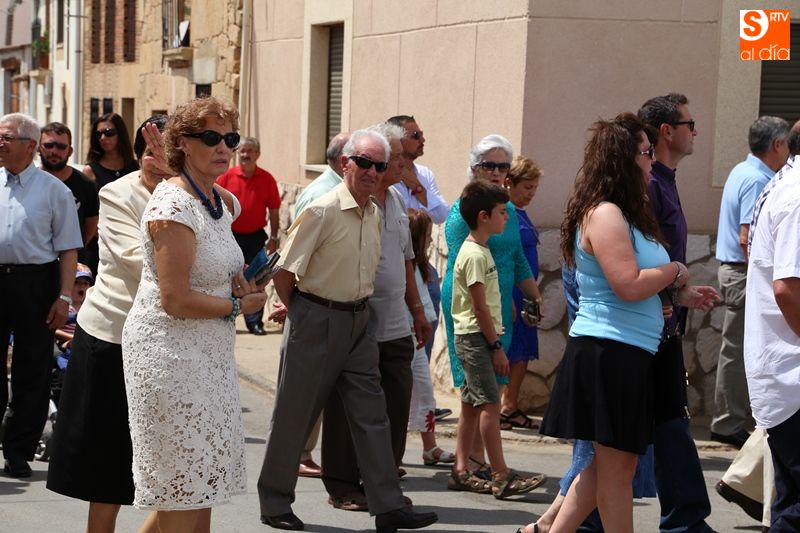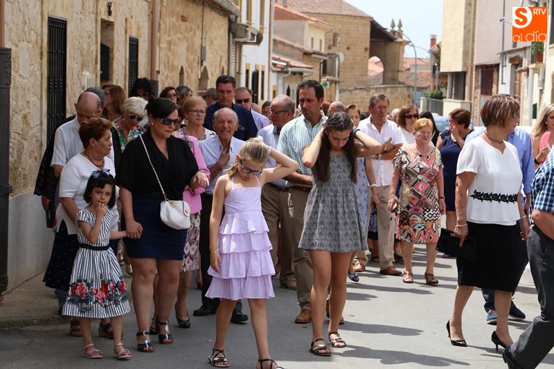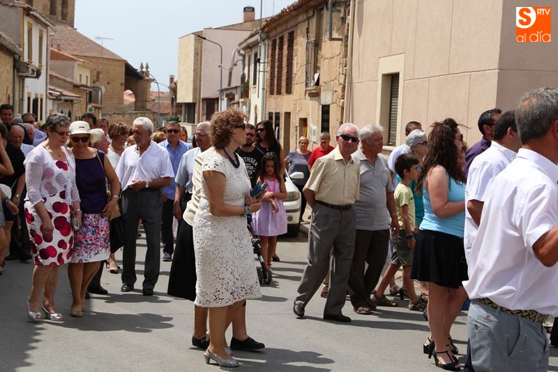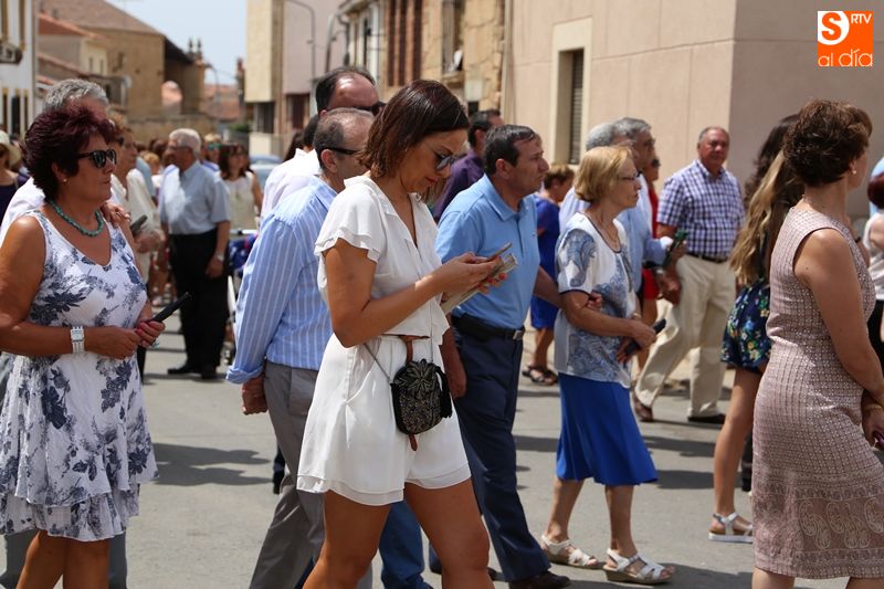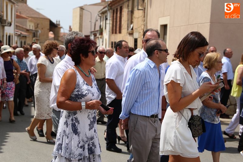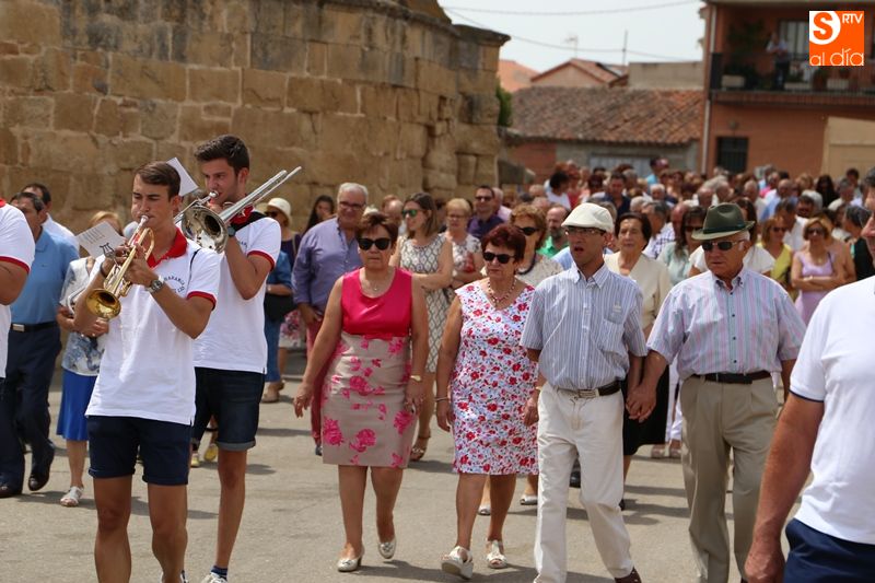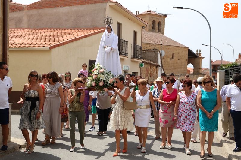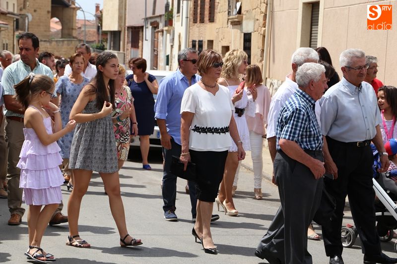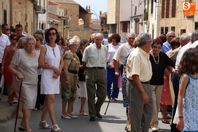 Aldearrubia ha llegado hoy a su último día de las fiestas, jornada que coincide con el día grande. Los vecinos han asistido a la tradicional misa en la Iglesia parroquial de San Miguel Arcángel, declarada Bien de Interés Cultural, y han salido a continuación, cerca de las 14 horas, en procesión junto a la imagen de Nuestra Señora de la Asunción para recorrer las calles de la localidad. La patrona ha sido portada a hombros por mujeres del pueblo.