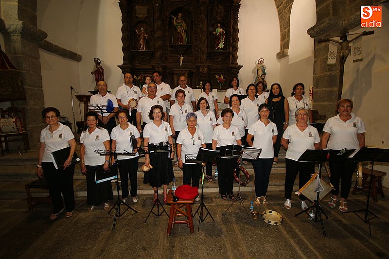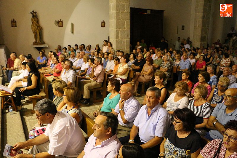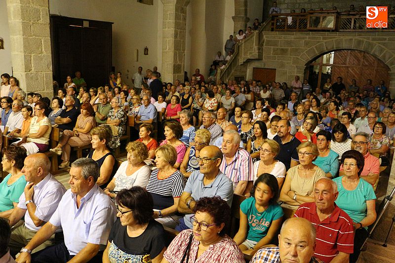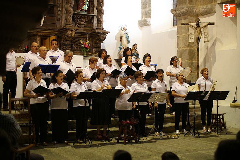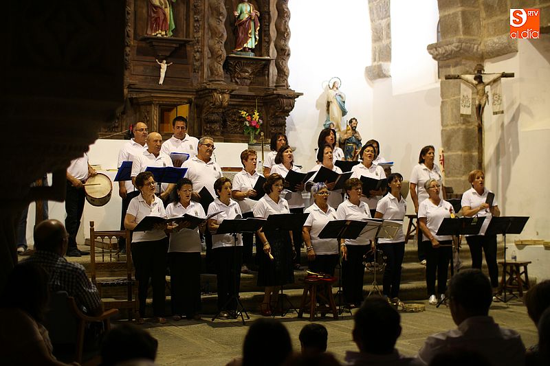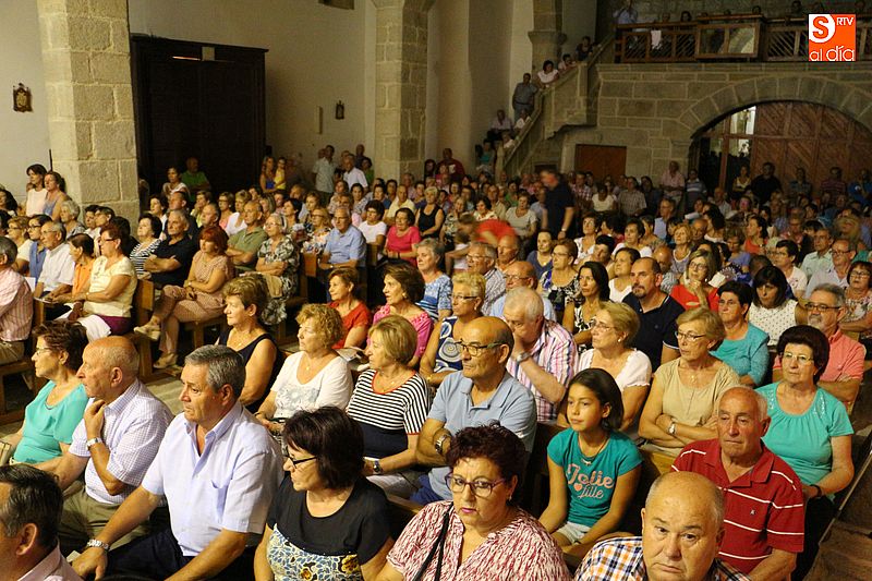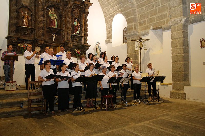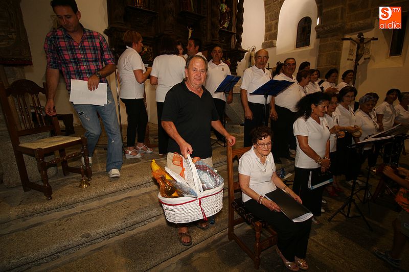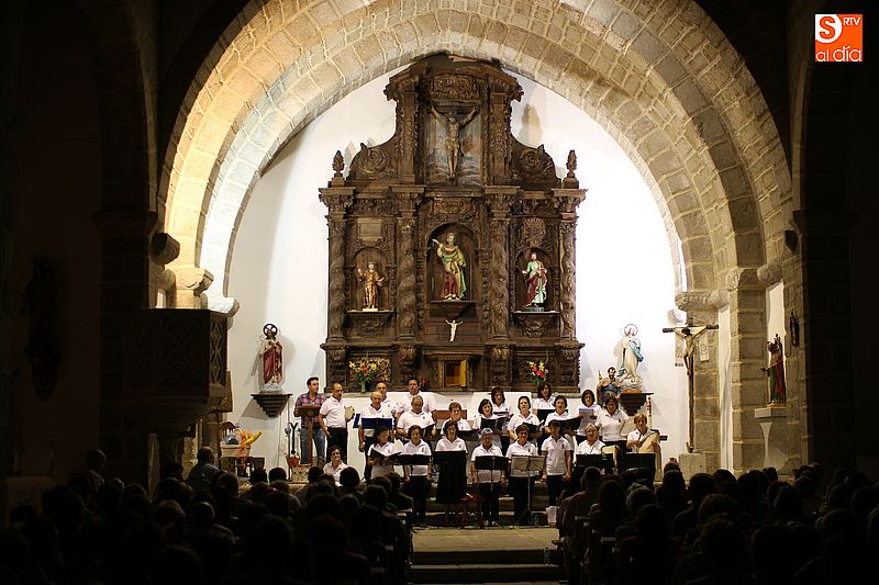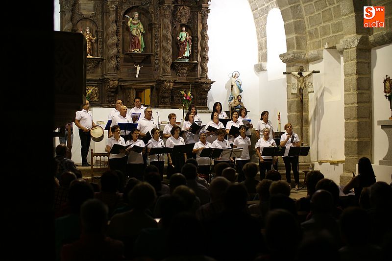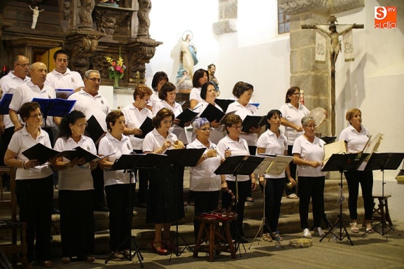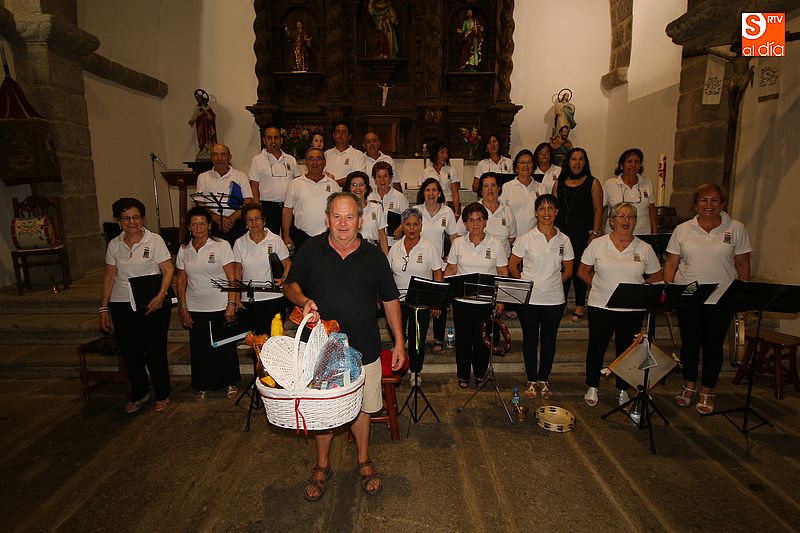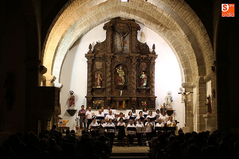 La iglesia de San Bartolomé en Los Santos vivió anoche un agradable concierto ofrecido por el coro local en el que el público llenó por completo el templo. Los cantantes ofrecieron una selección de canciones populares castellanas que arrancaron los aplausos del público por la cuidada presentación de los artistas. Se vendieron papeletas para recaudar fondos para la celebración del encuentro provincial de coros que tendrá lugar en Los Santos. Entre todas las papeletas se sorteó una cesta de productos tradicionales.