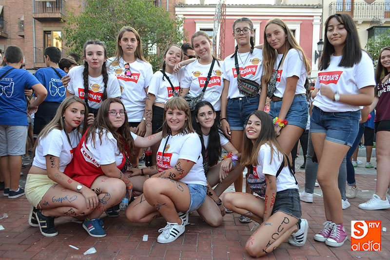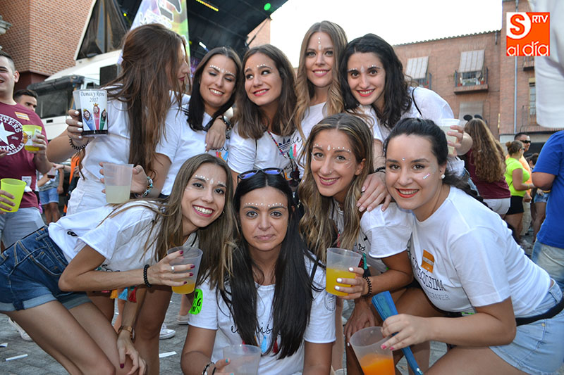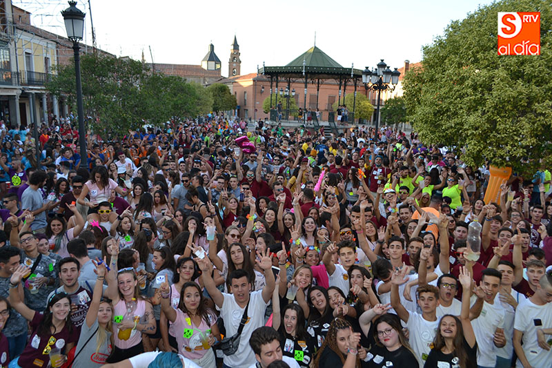 Un ritual que arrancaba a las 19:30 horas cuando comenzaban a congregarse las peñas en la renovada Plaza de España, para iniciar la gran fiesta que marcaba la cuenta atrás para el pistoletazo de salida. Y así, poco a poco, se han ido congregando más y más personas hasta llenar el ágora de ritmo y fiesta al compás de Disco Zarabanda y los éxitos del momento.