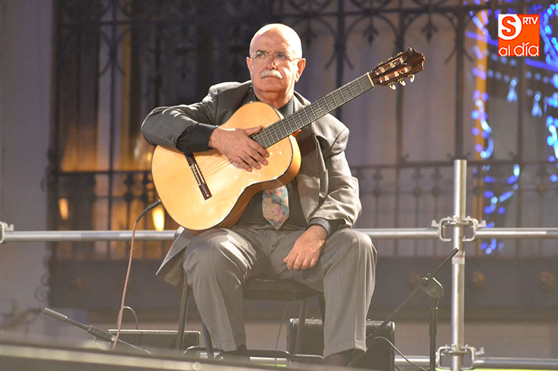 Tras ello, la actividad se trasladaba hasta el gran escenario de la Plaza de la Constitución, en el que tenía lugar una sobria gala inaugural conducida por el actor Alfonso Mendiguchia y Patricia Estremera, que contaba además con el acompañamiento musical a la guitarra de Michel Núñez, Director de la Escuela Municipal de Música.