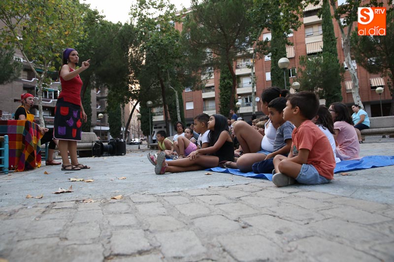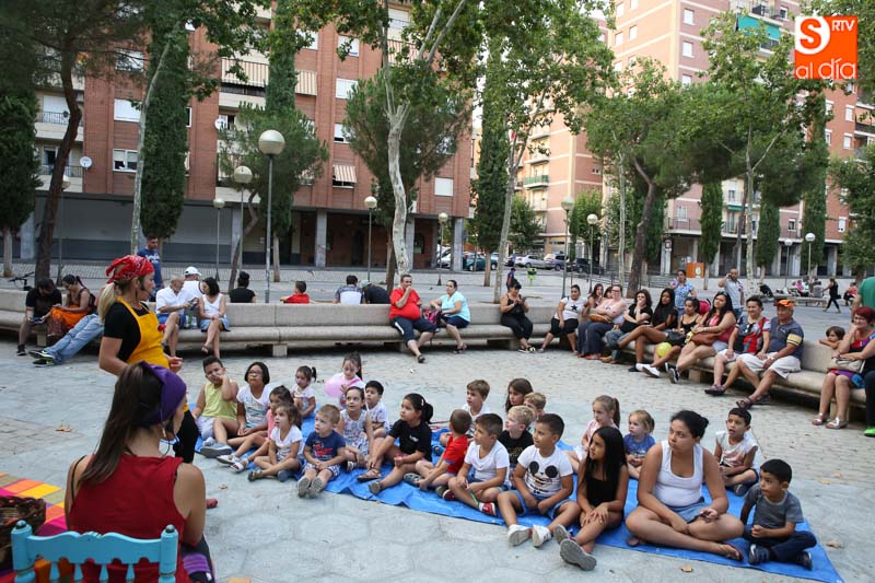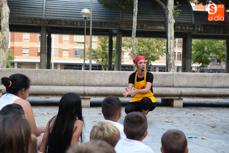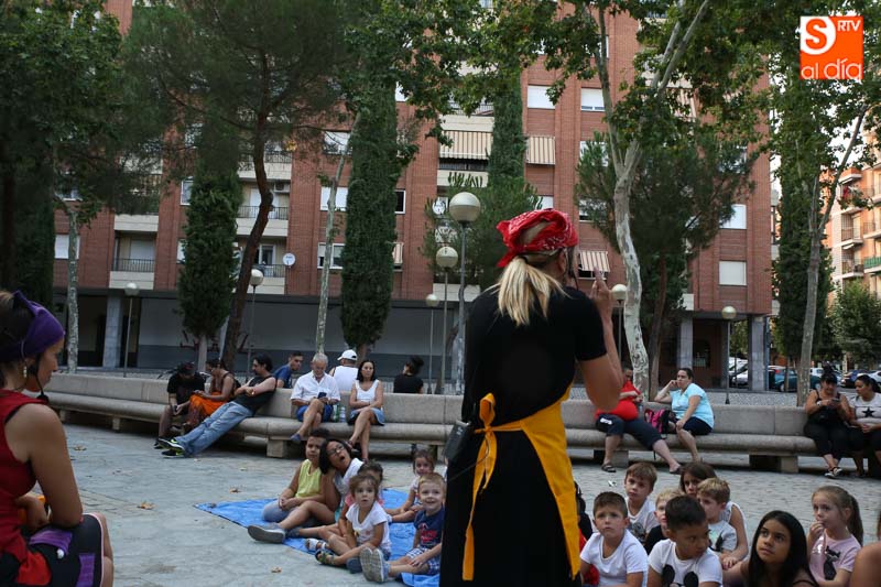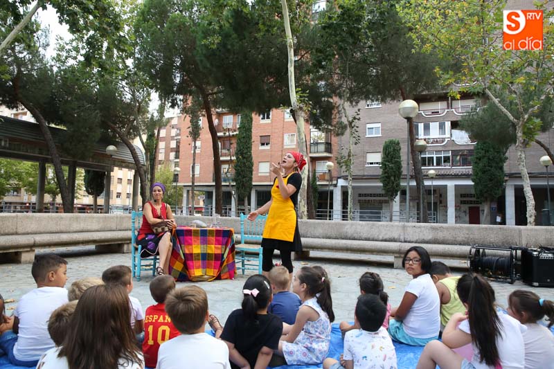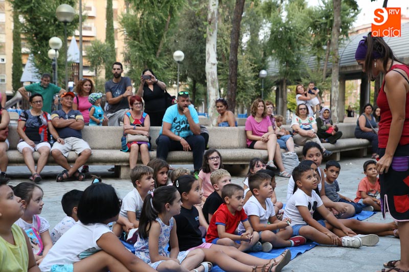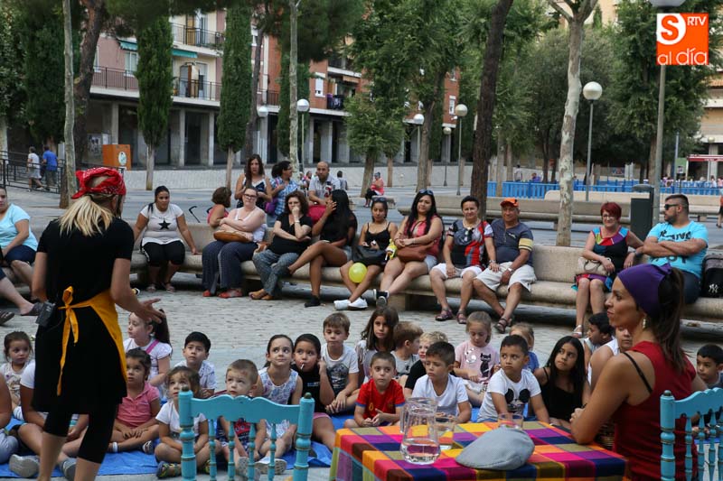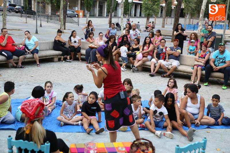 El turno de este jueves fue para 'María? por dos!', un cuentacuentos que hizo las delicias de los pequeños y que disfrutaron con el buen humor en esta tarde veraniega en la Plaza de Barcelona.
