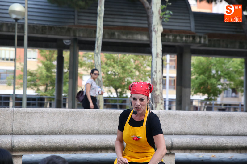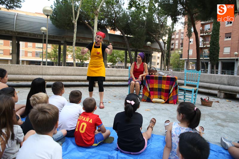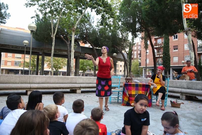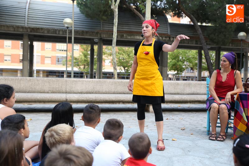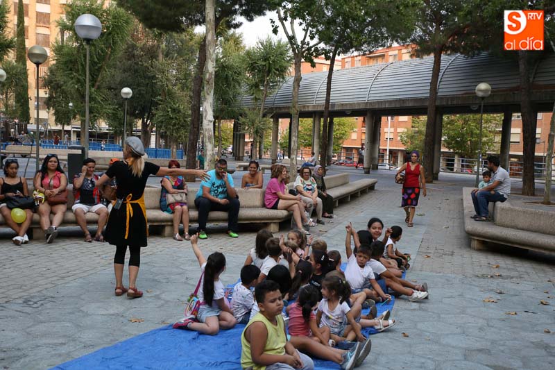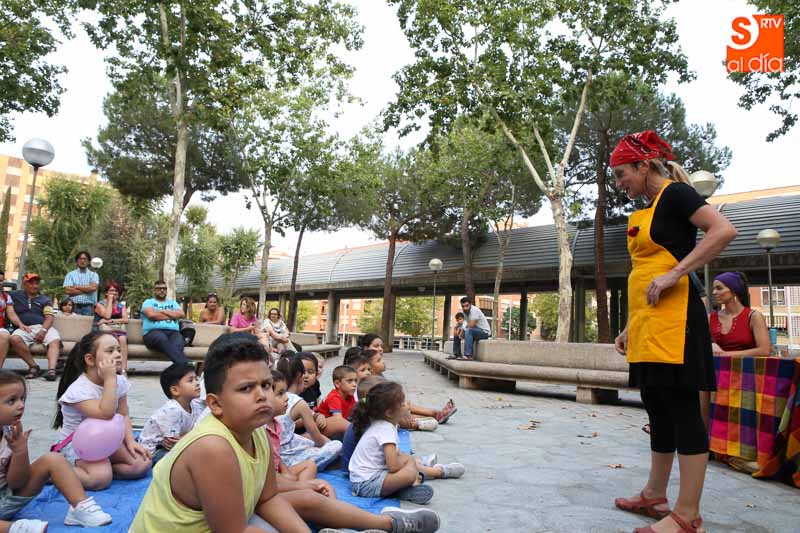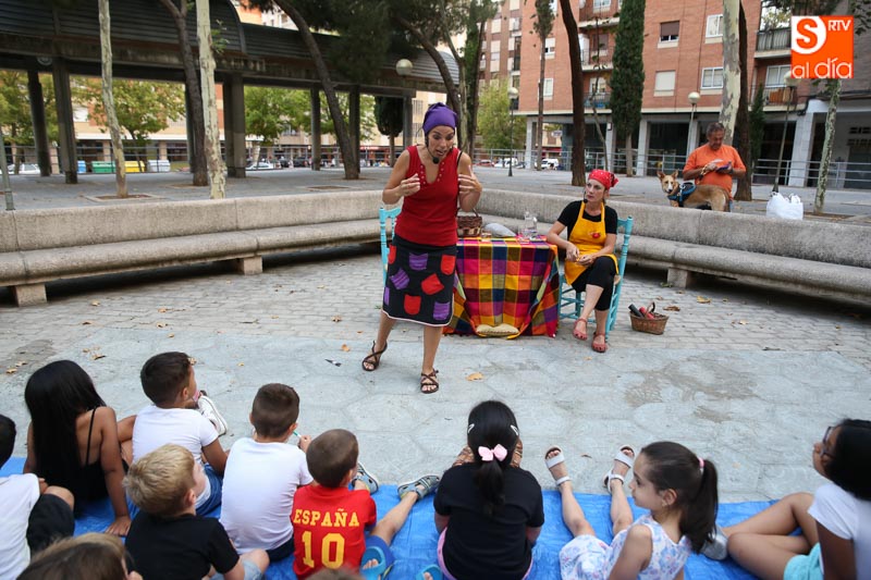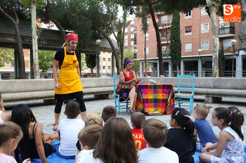 El turno de este jueves fue para 'María? por dos!', un cuentacuentos que hizo las delicias de los pequeños y que disfrutaron con el buen humor en esta tarde veraniega en la Plaza de Barcelona.