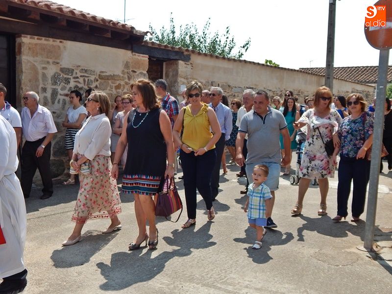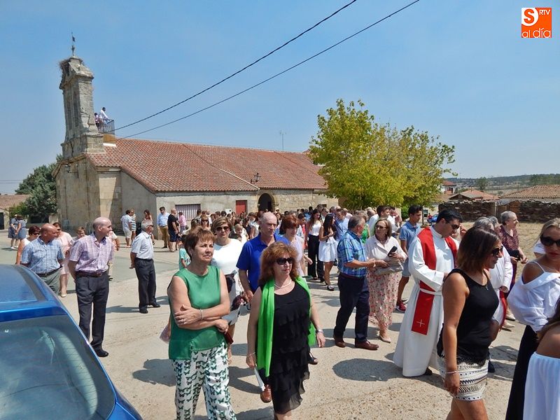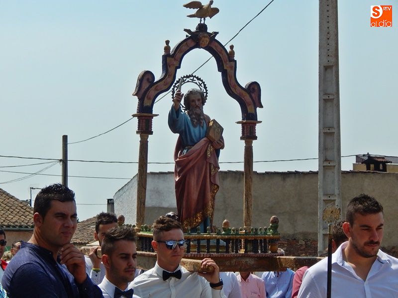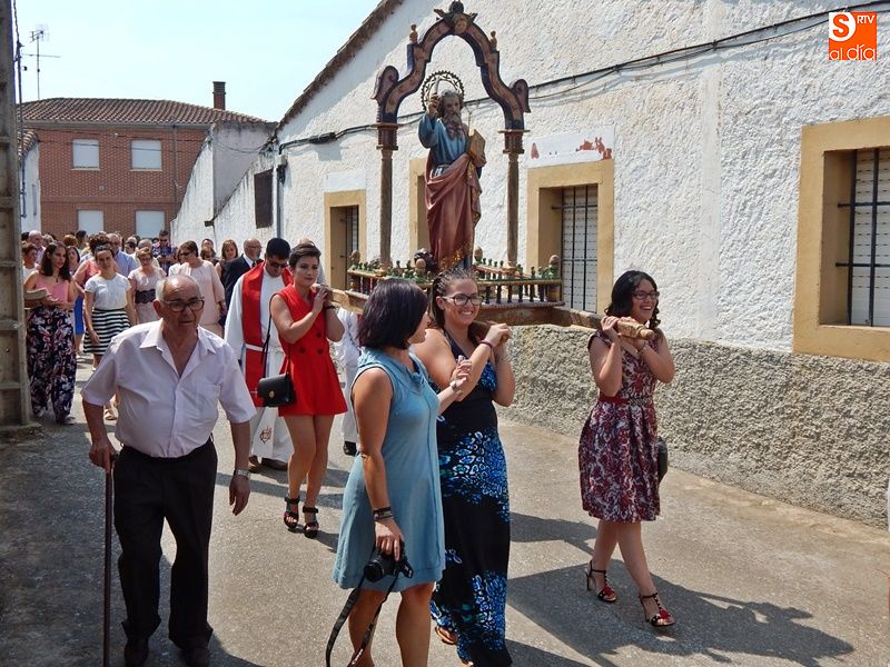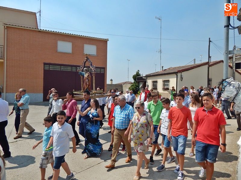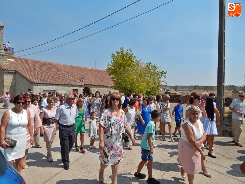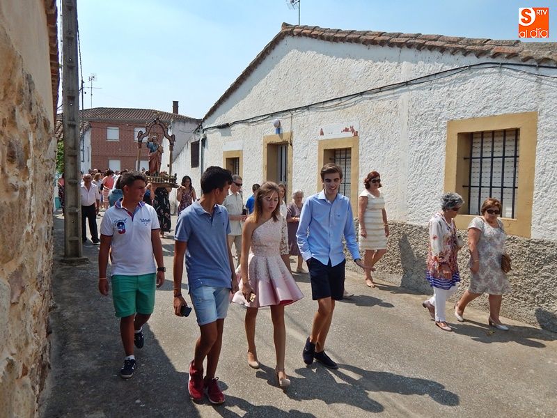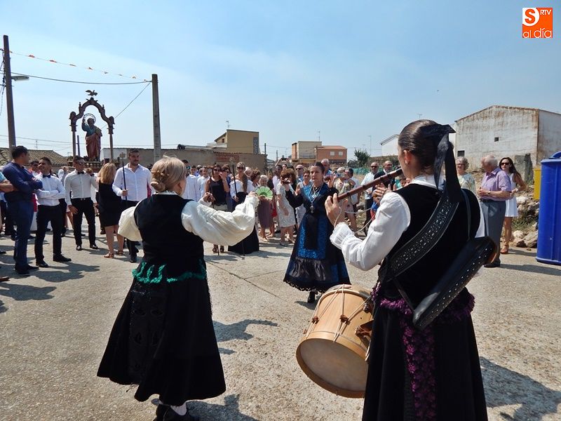 Los vecinos de Golpejas han arropado al patrón San Bartolomé en el día grande de sus fiestas patronales. Los actos religiosos han protagonizado la jornada, con la celebración de la Santa Misa y procesión acompañada de los ritmos del grupo de música tradicional Malajota Folk.
