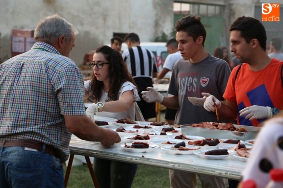 Los vecinos de San Morales han cenado esta noche a base de panceta, lomo y chorizo. La localidad ha contado con una gran parrillada para reponer fuerzas en el día grande de las fiestas en honor a San Bartolomé. Los vecinos se han congregado en el merendero para cenar, mientras un numeroso grupo de voluntarios se encargaba de repartir la carne, el pan y la bebida.