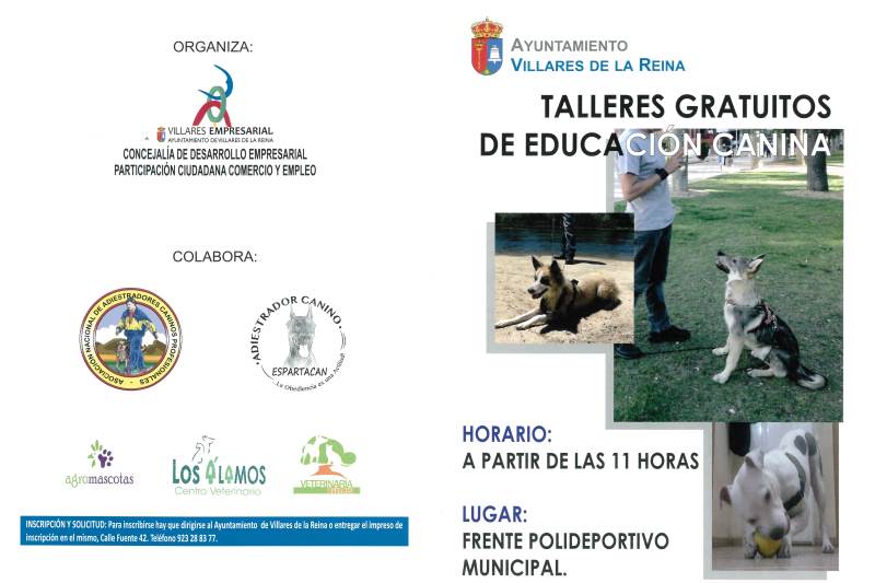 La Concejalía de Participación Ciudadana del Ayuntamiento de Villares de la Reina, pondrá en marcha los próximos días un curso taller de educación canina urbana a través del cual se pretende incrementar la conciencia social, reducir el número de abandonos y favorecer la convivencia entre los propietarios de los perros y sus mascotas.