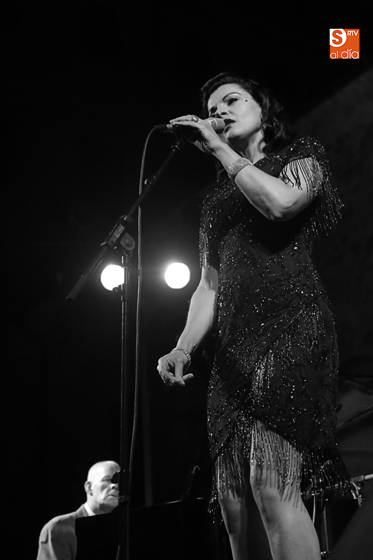 Su sugerente y evocadora voz, transporta a la audiencia a un pasado de glamour y elegancia que hacen de cualquier concierto de esta vocalista una experiencia que sin duda permanece durante mucho tiempo en la memoria de los asistentes.