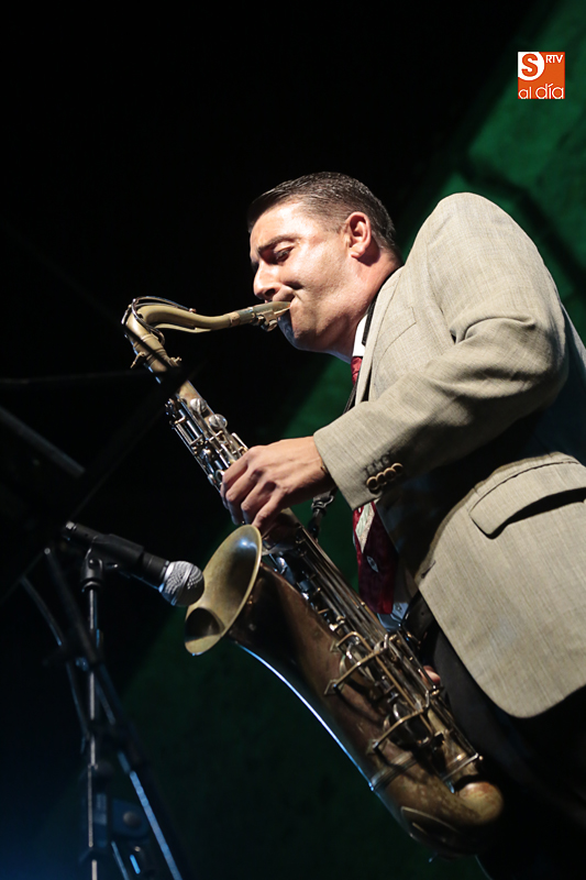 Los jardines de Santo Domingo acogieron este sábado el intenso y emocionante concierto de Sue Moreno & The Hollywood Serenaders, música de jazz que deleitó a los presentes y les llevó en el tiempo a mediados del siglo XX, en un ambiente digno de la mejor música de aquella época en los EEUU.