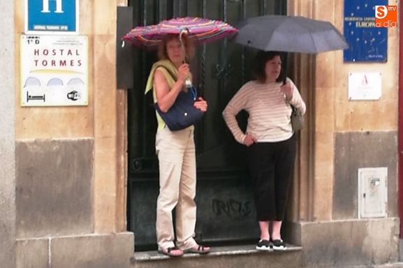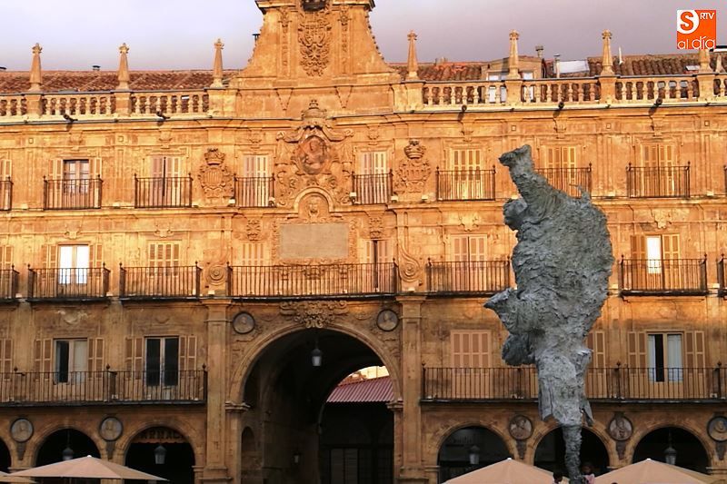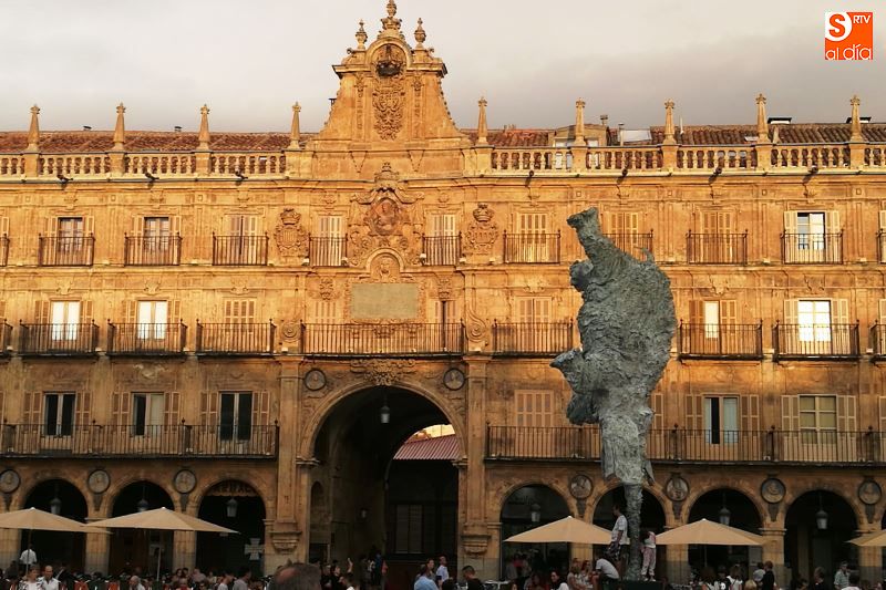 Uan previsión acertada ya que durante la madrugada de este domingo y durante toda la tarde festiva la lluvia y ambiente otoñal fueron los verdaderos protagonistas. Los paraguas y las nubes fueron dos nuevos compañeros de los ciudadanos de la capital del Tormes, que pese a todo, pasearon y disfrutaron de la tarde por la Plaza Mayor, reluciente de oro con el atardecer y el reflejo en la piedra de Villamayor.