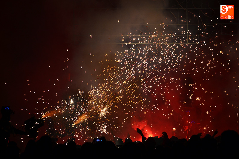 La Plaza de España, en la que envolvían en fuego el histórico Templete, servía de previa para un sprint final en el que el acceso a la Calle Bodegones y la Plaza de la Constitución se convertían también en grandes protagonistas, con intensas puestas en escena pirotécnicas y coreografías, que fueron seguidas en su tramo final por más de mil personas.