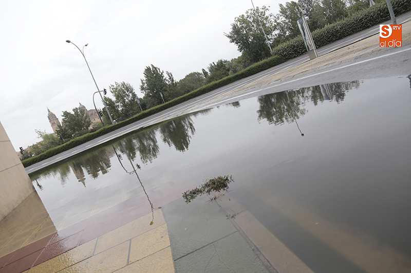 La fuerte tormenta que ha descargado una importante cantidad de lluvia durante la noche y primeras horas de la mañana de este domingo ha provocado la inundación entre la calle Maestro Sánchez Allú y la Vía Helmántica, en el Barrio El Tormes, situación que no es la primera vez que se produce.