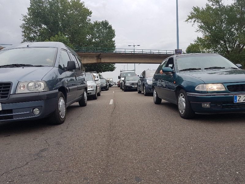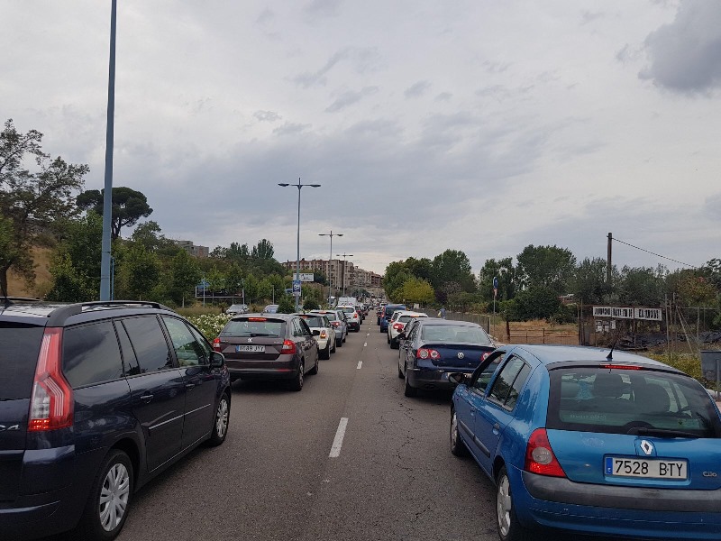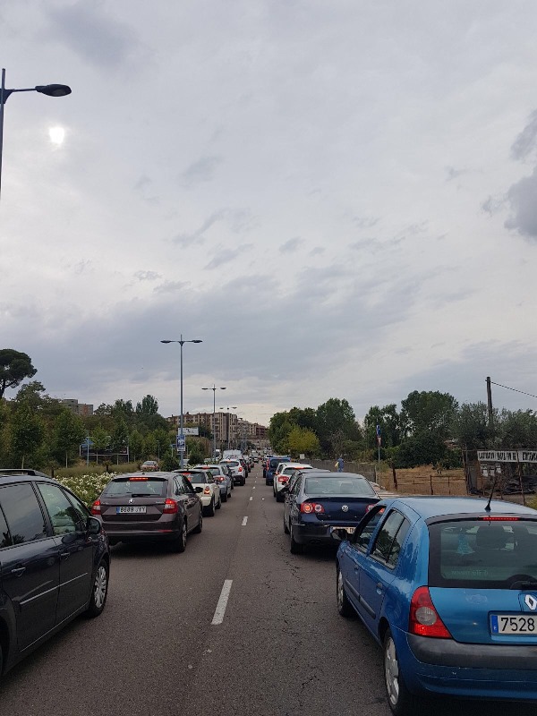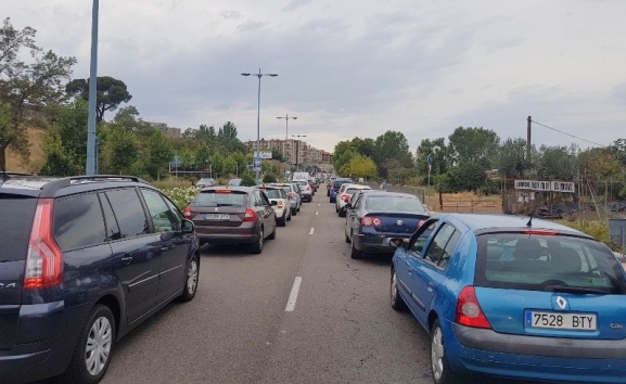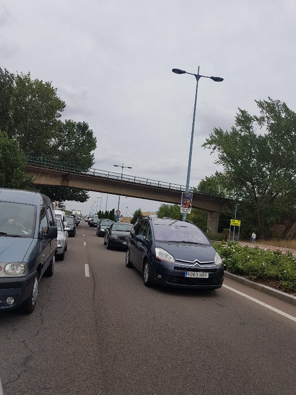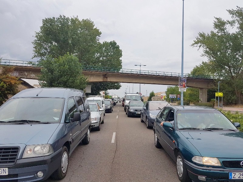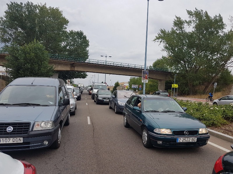 Atascos en la entrada del Príncipe de Asturias y Enrique Estevan desde la Vía Helmántica (carretera de Madrid)