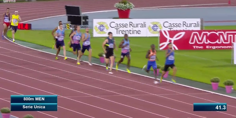 Precisamente, pasó en 9ª posición por el primer 400, que se completó en un buen tiempo, 49"80, gracias a que la carrera contó con una liebre que se retiró unos metros después. Eso hizo que Álvaro de Arriba ganase una posición numérica, además de adelantar a otro atleta más adelante (no se vio en la emisión televisiva, cuyos planos fueron bastante cerrados en muchos momentos), entrando 6º en la línea de meta.
