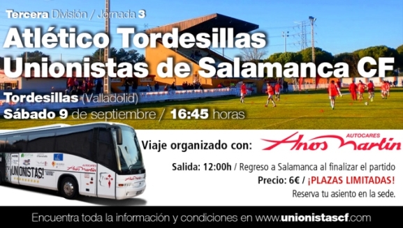 Además, la afición de Unionistas de Salamanca CF podrá desplazarse hasta Tordesillas en el viaje organizado por el club. El encuentro se celebrará el próximo sábado 9 de septiembre las 16:45 horas en Las Salinas. Las plazas son limitadas y por estricto orden de reserva.