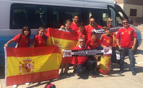 La Selección Española de Fútbol contará en su duelo frente a Italia de la noche del sábado en el Estadio Santiago Bernabéu con el apoyo de un grupo aficionados mirobrigenses, que se pusieron en ruta hacia Madrid a la hora de comer.