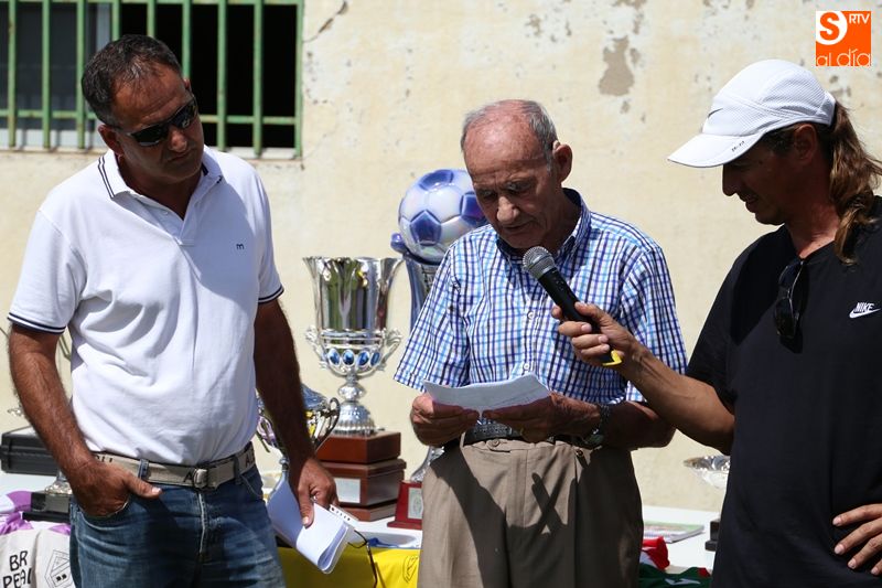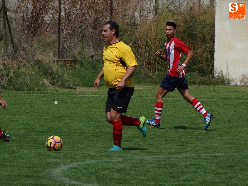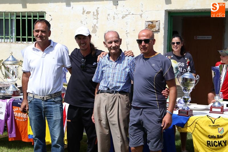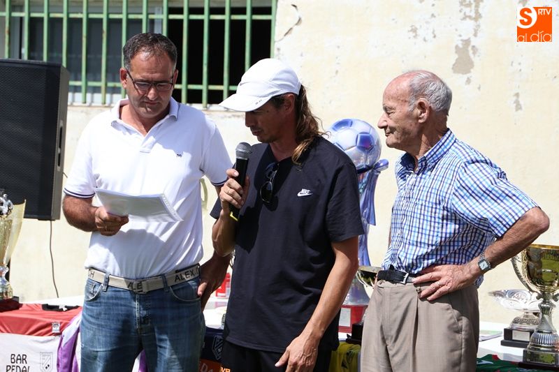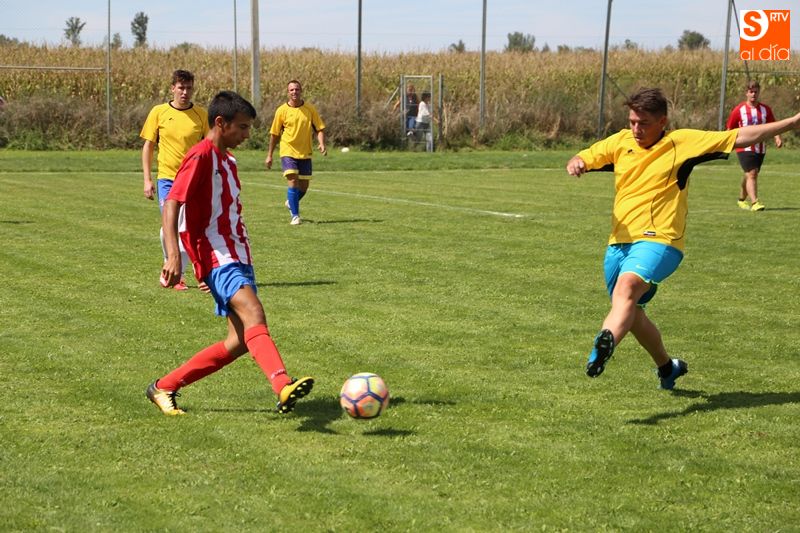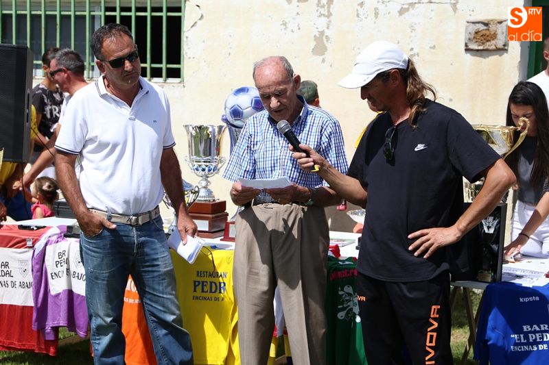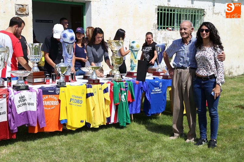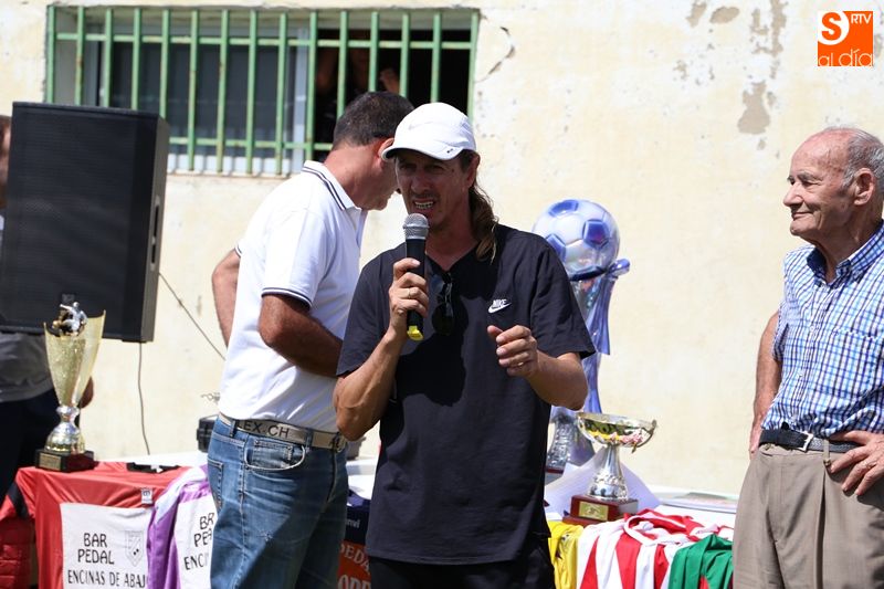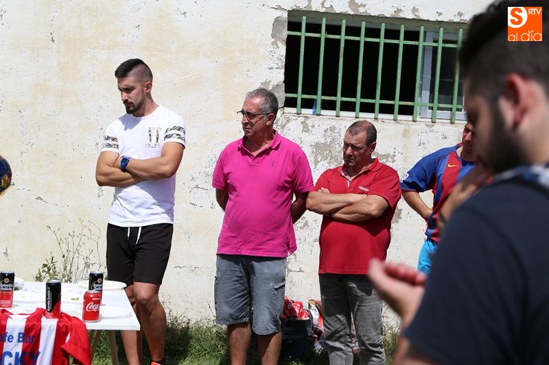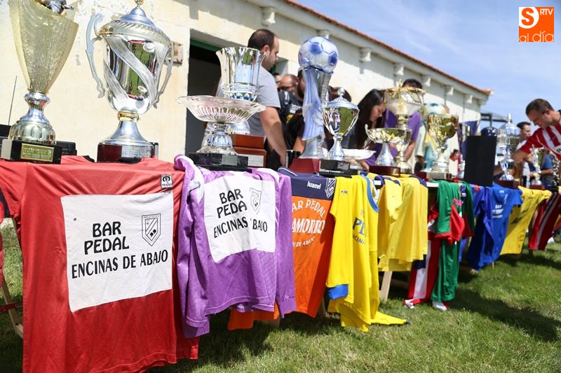 Nada menos que siete décadas lleva jugando al fútbol el Atlético Encinas. Corría el año 1947 cuando fue fundado por Antonio González. El fundador, que ha participado en la conmemoración del setenta aniversario en el campo de fútbol de Encinas de Abajo este domingo, ha tenido unas palabras para los asistentes, a los que ha contado cómo fueron los inicios del equipo, que llegó a jugar el último partido disputado en El Calvario, el antiguo campo de la Unión Deportiva Salamanca. Previamente, los jugadores de esta temporada, algunos de ellos nuevos fichajes, jugaron un partido con las viejas glorias, un encuentro en el que el resultado era lo de menos. La jornada ha reunido a jugadores, familiares, vecinos y muchas personas que han tenido alguna relación con el equipo a lo largo de sus vidas.