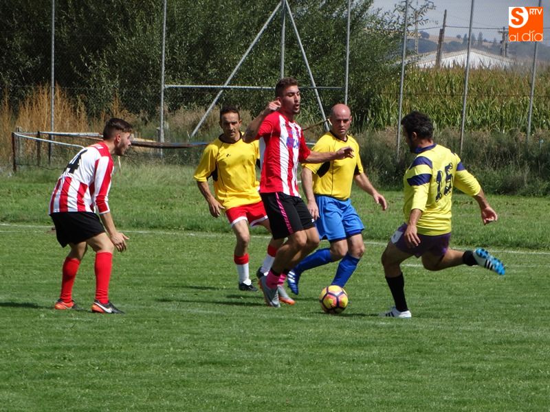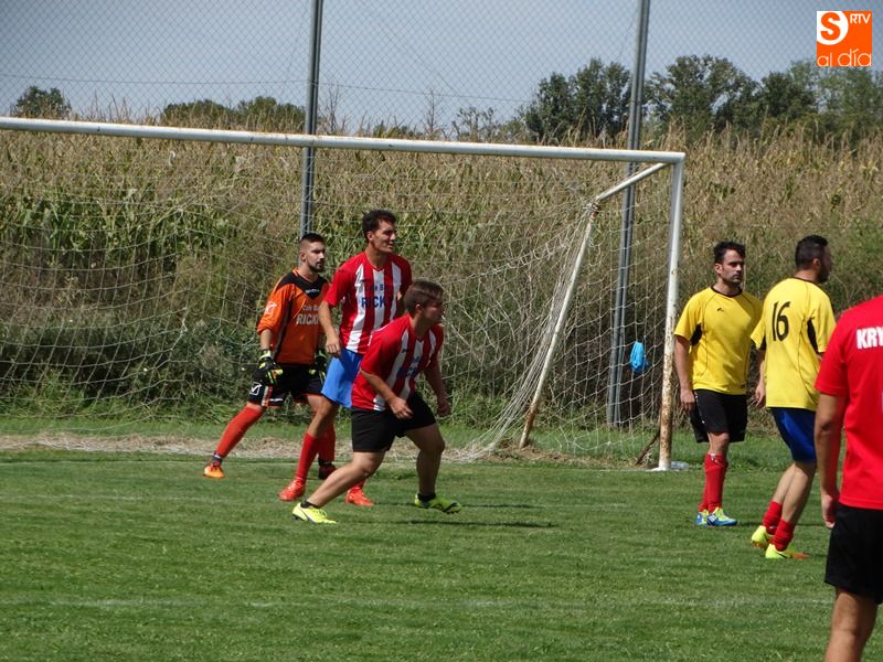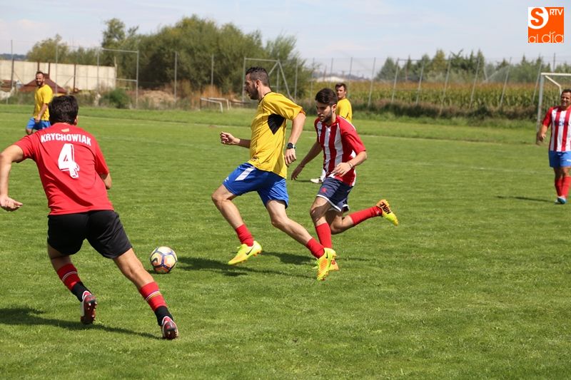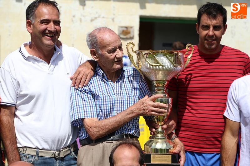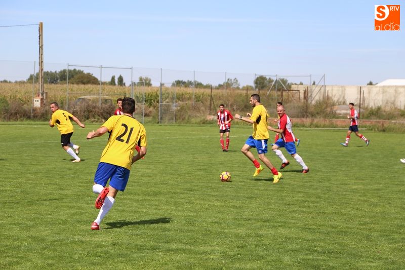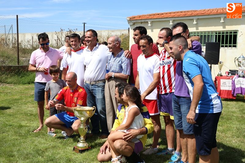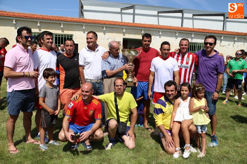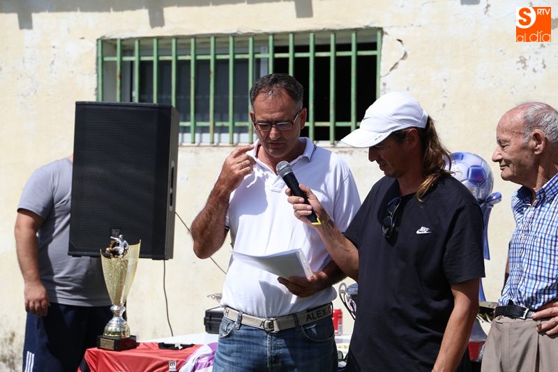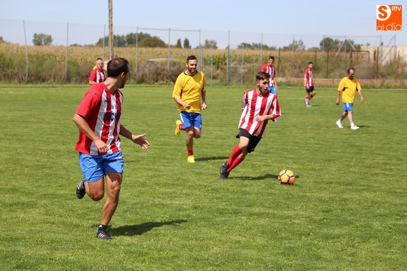 Nada menos que siete décadas lleva jugando al fútbol el Atlético Encinas. Corría el año 1947 cuando fue fundado por Antonio González. El fundador, que ha participado en la conmemoración del setenta aniversario en el campo de fútbol de Encinas de Abajo este domingo, ha tenido unas palabras para los asistentes, a los que ha contado cómo fueron los inicios del equipo, que llegó a jugar el último partido disputado en El Calvario, el antiguo campo de la Unión Deportiva Salamanca. Previamente, los jugadores de esta temporada, algunos de ellos nuevos fichajes, jugaron un partido con las viejas glorias, un encuentro en el que el resultado era lo de menos. La jornada ha reunido a jugadores, familiares, vecinos y muchas personas que han tenido alguna relación con el equipo a lo largo de sus vidas.