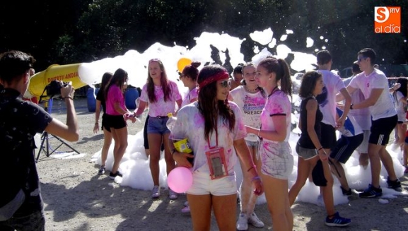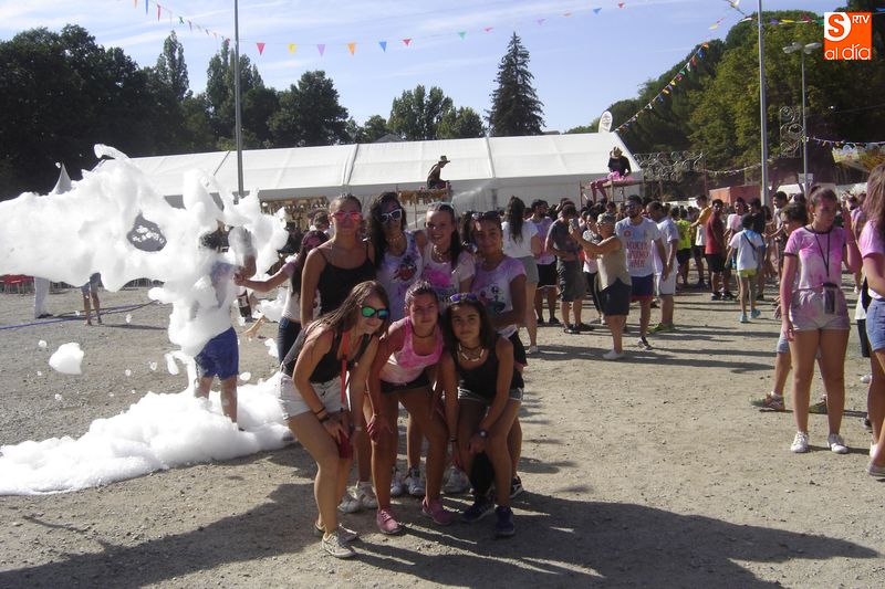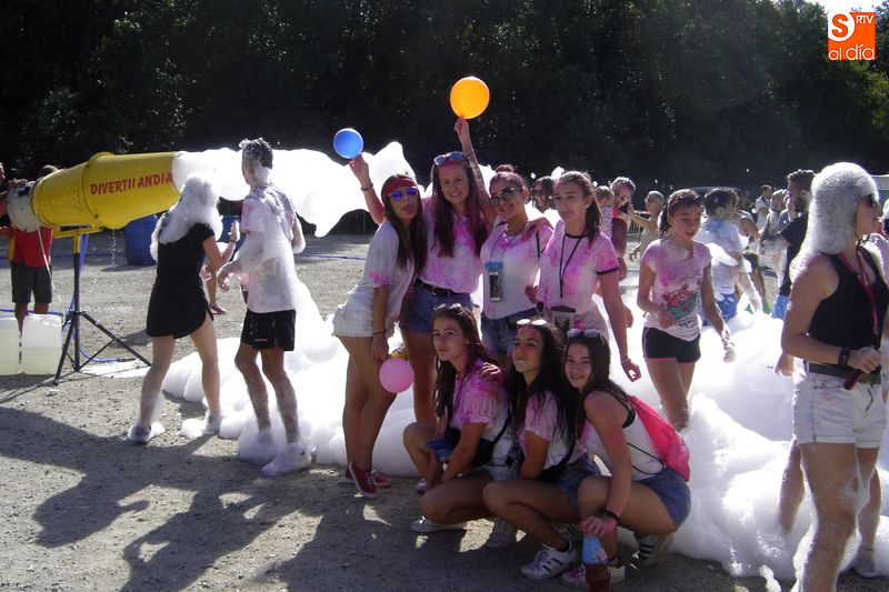 Esta tarde, los jóvenes se han divertido y han salido coloreados del Recinto Ferial, después de pasar un buen rato en el Holifestival. La Espuma, el agua y los polvos holi han teñido de color y han puesto sonrisas en las caras de los participantes en una de las nuevas actividades de las fiestas de este año, en cuya organización han participado las casetas y el Ayuntamiento de la ciudad.