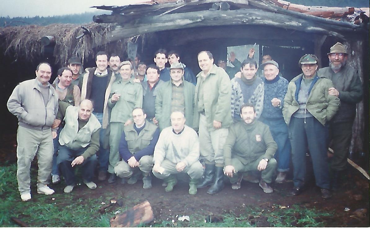 El silencio de los pocos que estaban en el bar se ha roto, todos a un tiempo han preguntado, queriendo saber más pormenores de lo que su vecino intentaba contarles? ¿Dónde? ¿Cómo? ¿Es grande? Y así desgranaban preguntas, mientras ya se veían caminando ladera arriba, en busca de la apetecible pieza. Así que después de ir a buscar las escopetas y aumentado el grupo inicial de participantes por algún desocupado que también quería participar en el evento cinegético, han emprendido marcha hacía los rompidos de los altos de la sierra. Y al llegar al sitio donde el vecino y guía les indicaba, justo donde la nieve trazaba una divisoria delimitando con más verdor los pastos, ya dentro del vallado? ¡estaba el jabalí! Se asomaron con recelo por detrás de la tapia y en el centro del prado entre las hojas de roble y castaños caídas, sobresalía la cabeza de un jabalí que se movía pausadamente, oteando.