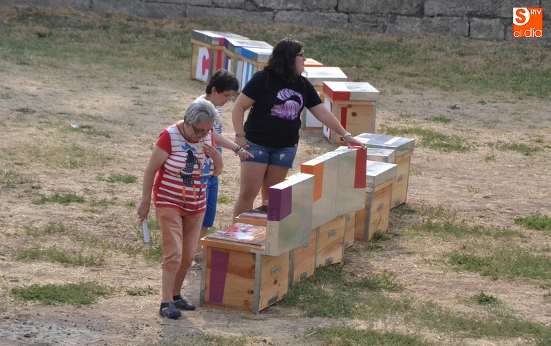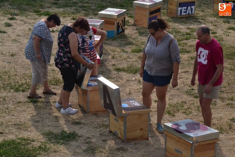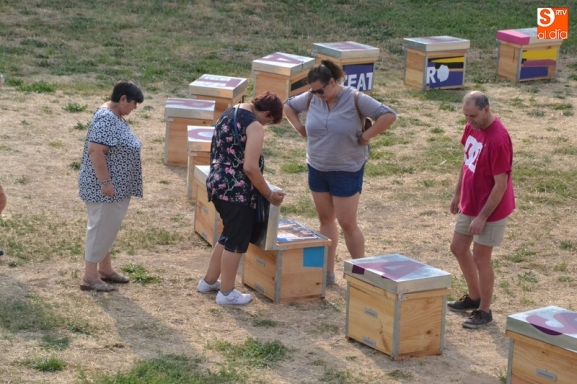 Al igual que otros muchos mirobrigenses y profesionales de la Feria, los usuarios de Asprodes se adentraron en el foso para levantar la tapa de las colmenas y descubrir una serie de fotos pertenecientes a las 19 ediciones precedentes del evento.