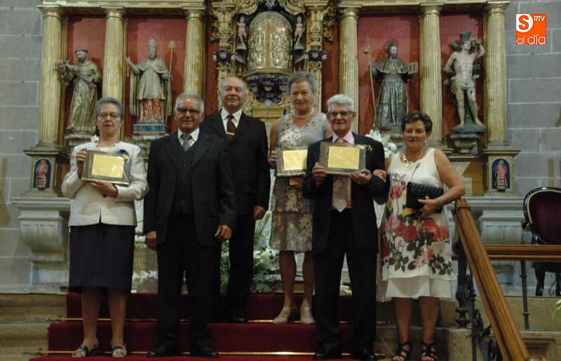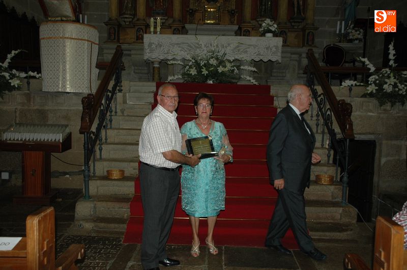 El acto de entrega de placas tuvo lugar en la iglesia parroquial tras la eucaristía oficiada por el párroco Andrés Celestino García. Tras la ceremonia religiosa, el presidente de la Unión Comarcal de Asociaciones de Mayores, José María Regalado, felicitaba a los 28 matrimonios y agradecía al alcalde de Lumbrales, Pedro Sánchez, la disposición de ambos para acoger este evento.