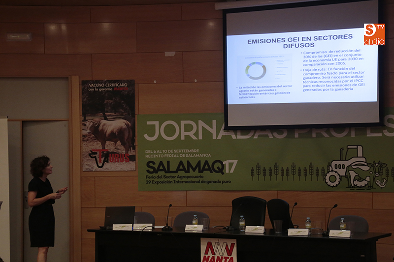 'Reducción de la huella de carbono' es el título de la conferencia impartida este miércoles en Salamaq por la directora técnica de Asoprovac, Matilde Moro, en la inauguración de las jornadas profesionales dedicadas al vacuno de carne.